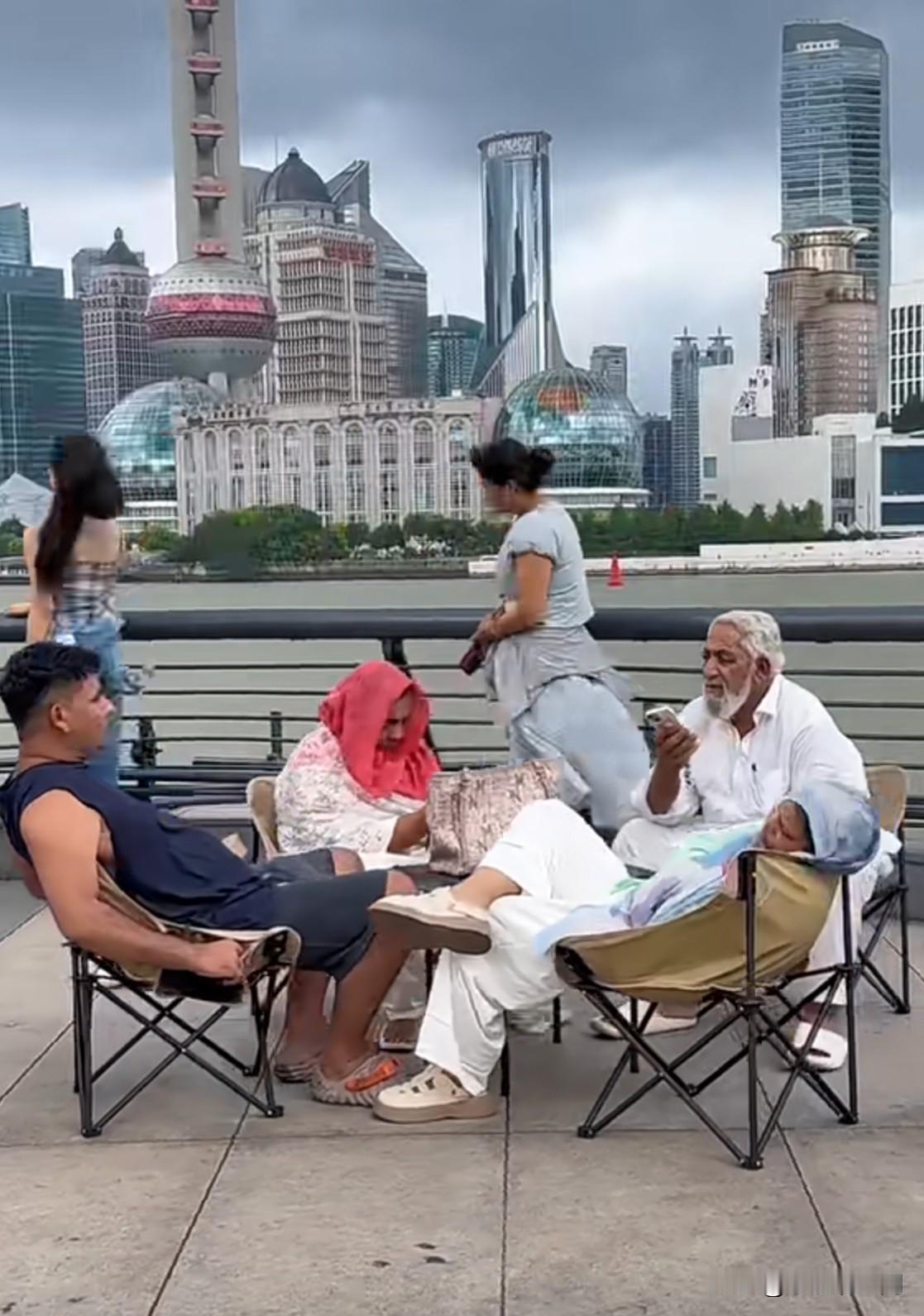 印度人来上海外滩旅游观光,直接摆上椅子坐在那,这素质堪忧啊[捂脸]