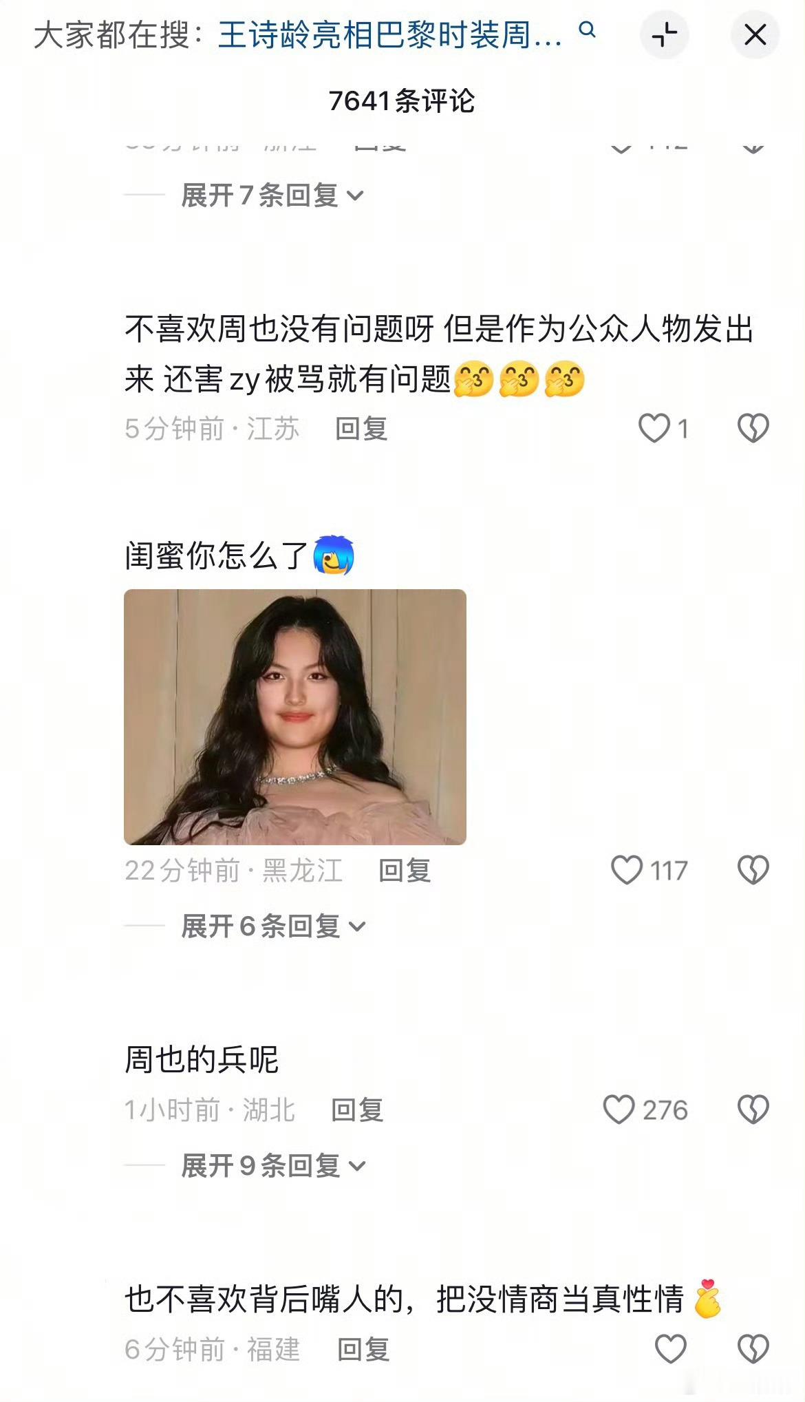 李湘 周也王诗龄评论区被网友冲了,live里说的是妆容,其实喜欢不喜欢有正常,但是发出前肯定要检查,如果是无心的舆论出来了就稍微解释一下彼此有个台阶下也行,就那么挂在那里挺尴尬的