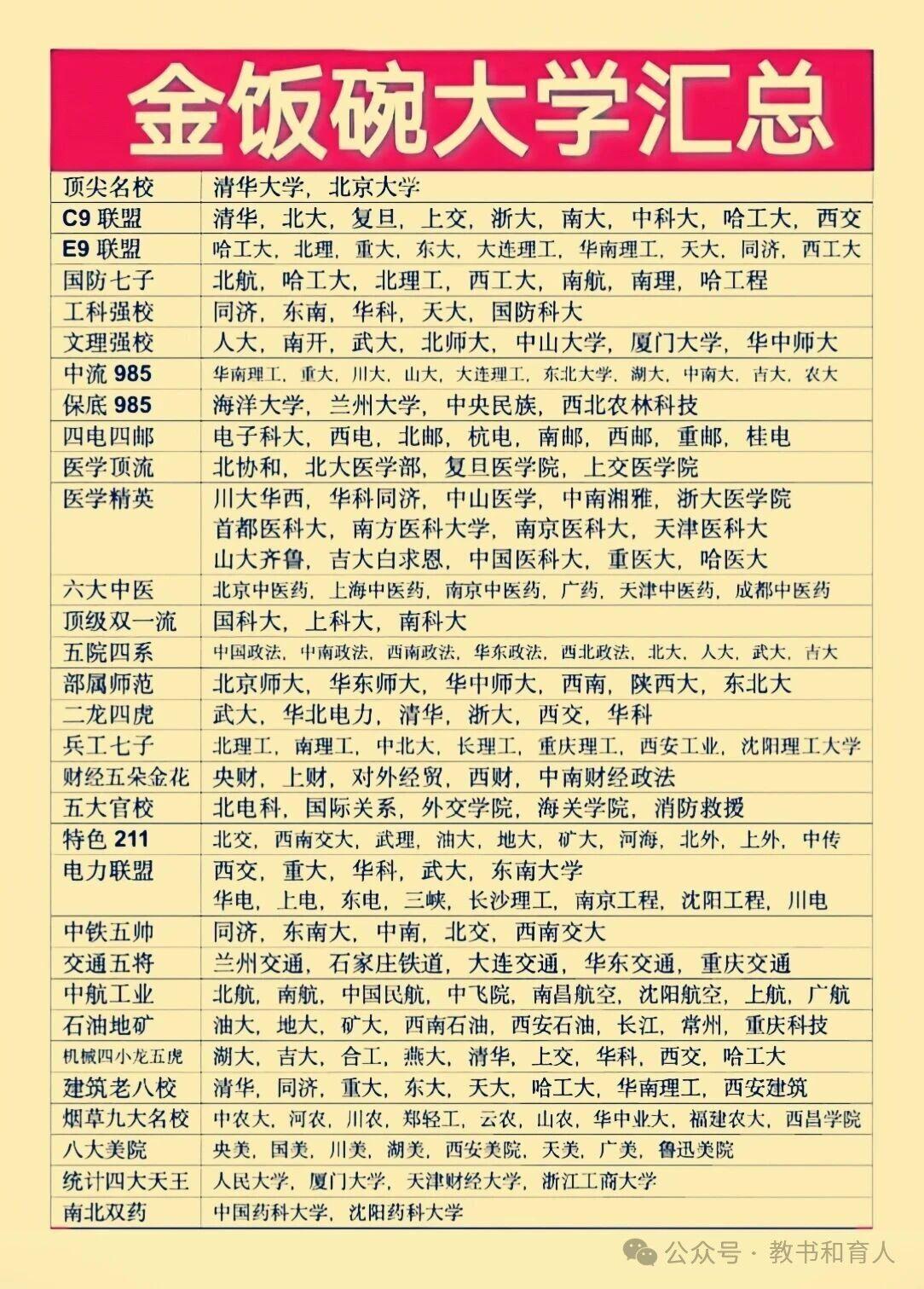终于把它们集全了,考上就是金饭碗的大学,不容错过!一张图看懂全国金饭碗大学汇集!