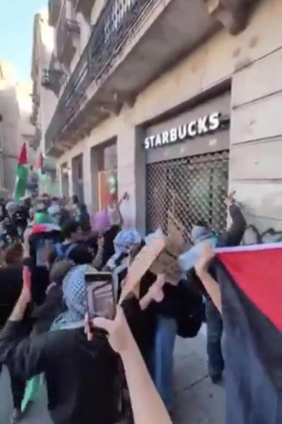 🚨🇪🇸🇵🇸抗议活动持续,巴塞罗那星巴克遭破坏 作为巴塞罗那持续抗议活
