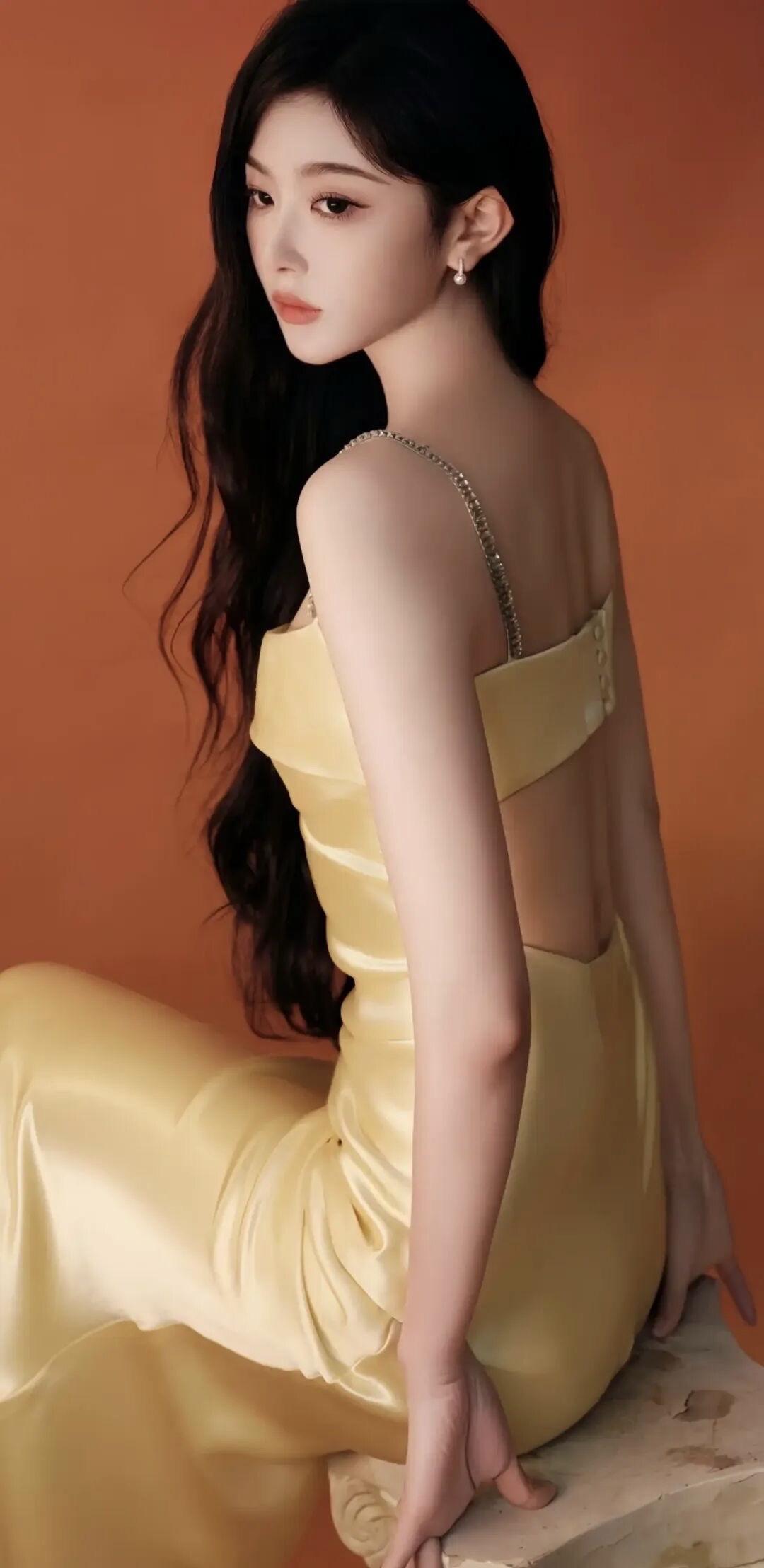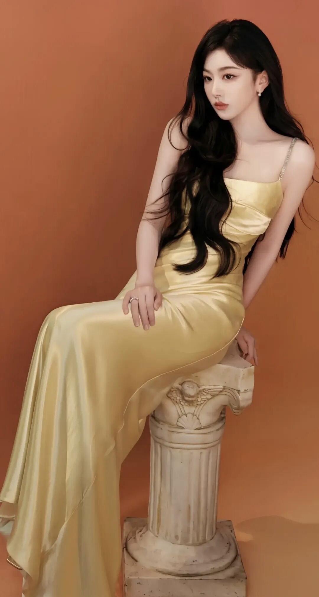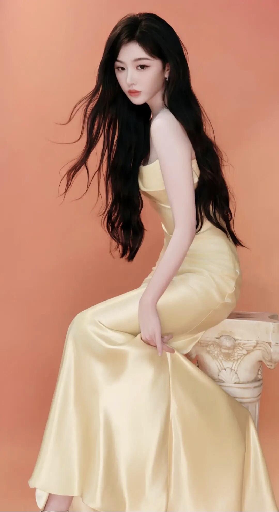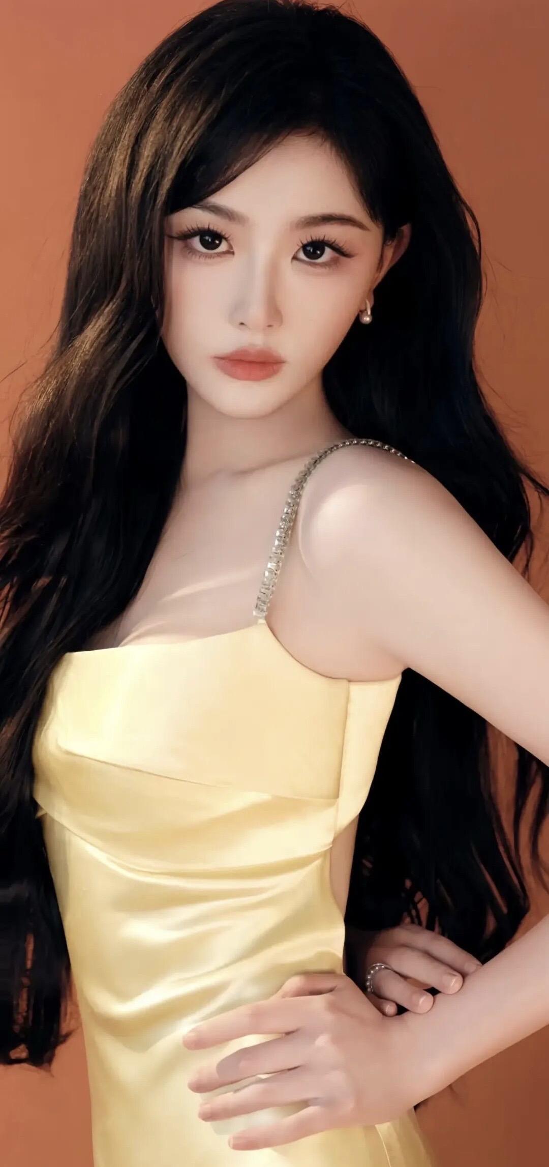 孔雪儿|淡黄色吊带长裙,肤白貌美身材好!