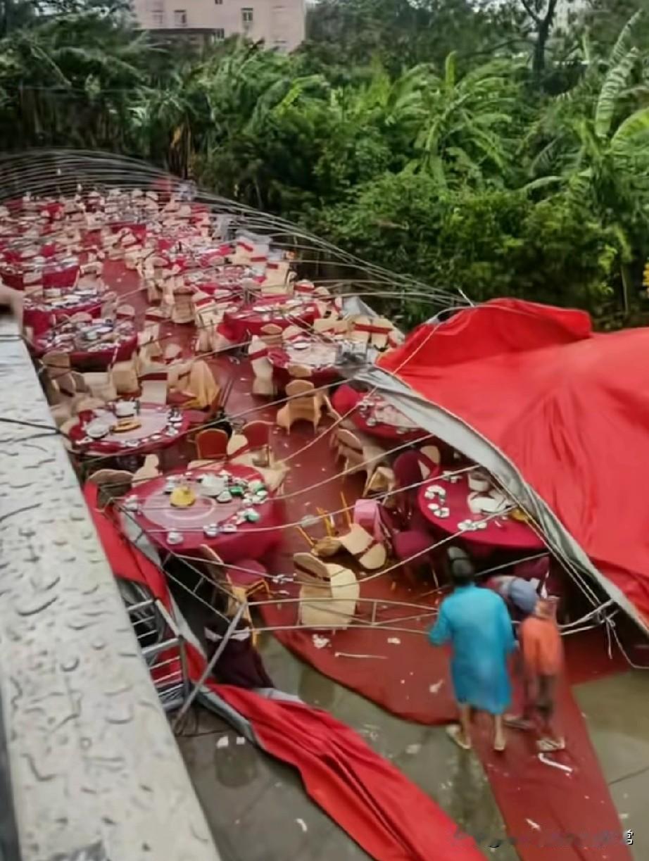 新人欲哭无泪:这婚结得比渡劫还难 新人结婚撞上台风“麦德姆”,婚宴现场直接被掀翻!红帐篷碎成布条,桌椅东倒西歪,宾客们在风雨里凌乱。婚庆团队哀嚎“我是来干活的,不是来抗台风的”,新人看着一地狼藉,估计肠子都悔青了。 你觉得在台风天办婚礼,是铭记一生的勇敢!