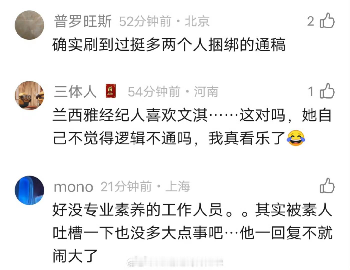 兰西雅经纪人对此的解释是喜欢文淇,难道不能对自己喜欢的演员点赞评论一下。