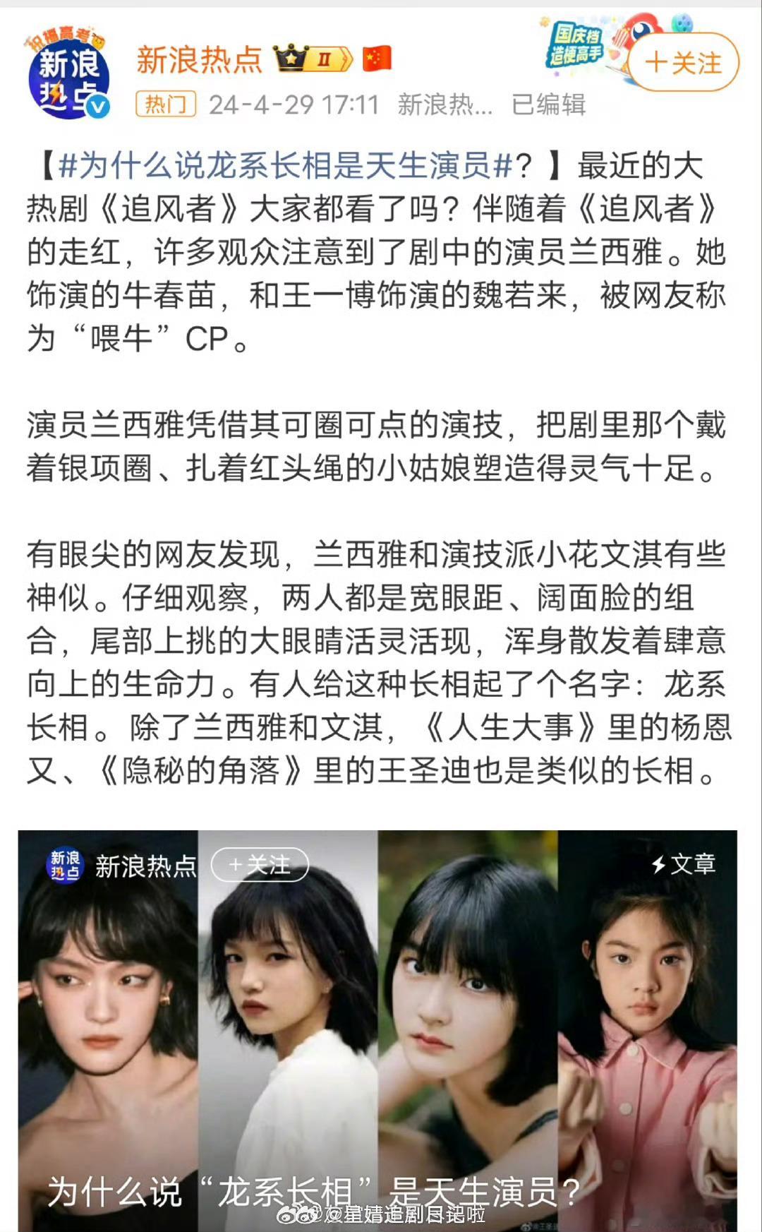 兰西雅和文淇应该属于竞品吧,还有很多说她俩神似双胞胎的,同款龙系长相+灵气十足的演技。