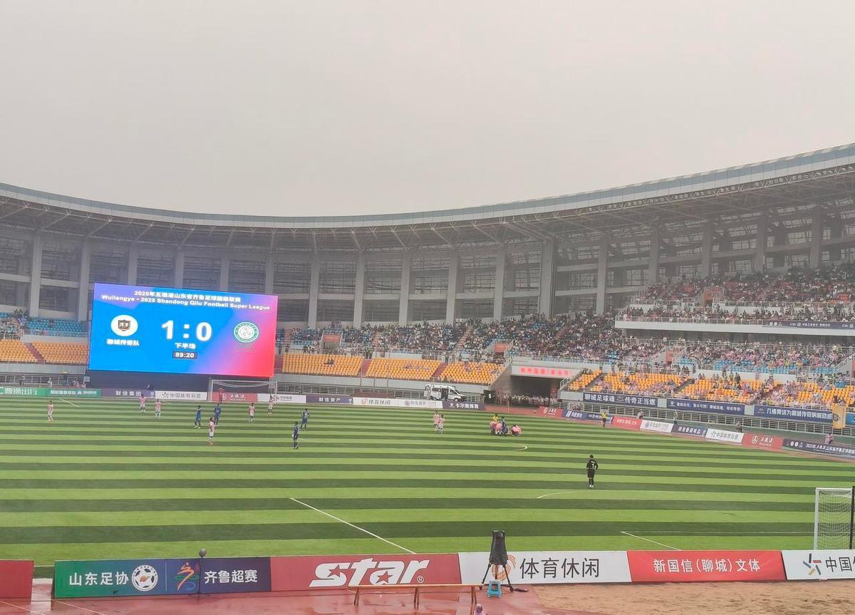 聊城1∶0赢了,8176人站着吼,雨没下透,草皮却热得冒汗。 9号王宇轩,鲁能青