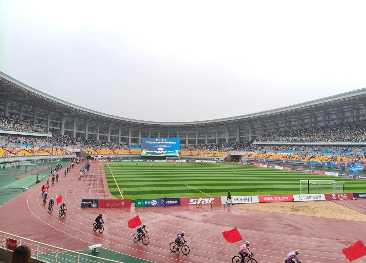 聊城1∶0赢了,8176人站着吼,雨没下透,草皮却热得冒汗。 9号王宇轩,鲁能青训出来的愣小子,一脚捅穿了滨州的防线,赛季第五球,射手榜第一,没庆祝,跑回中圈,像赶早市的小伙儿——赢了,还得接着干。 中场20个娃骑平衡车绕场,雨衣上印着“好运山东”,大屏一扫,62万消费券立马没了影儿。 没人喊口号,但没人不掏钱。 足球不是表演,是让大人小孩、卖煎饼的、开网约车的,都愿意蹲在看台上,淋着小雨,一起喊。 李金羽在济南和老球迷合影,当年那脚弯弓射大雕,现在成了教练,带辽宁冲超。 他没提过去,只说“节日愉快”。 可全场球迷都知道——有些东西,没变。 不是球技,是人心里那团火,还烧着。
