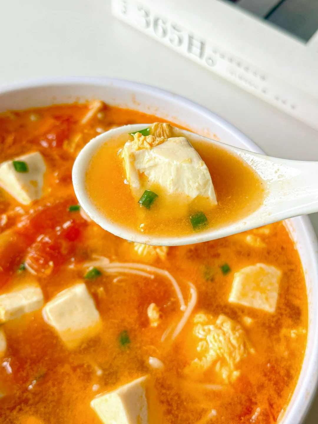 这样做出来的番茄金针菇豆腐汤巨好喝,鲜美还含有高蛋白!卡路里低!特适合减脂人群😇