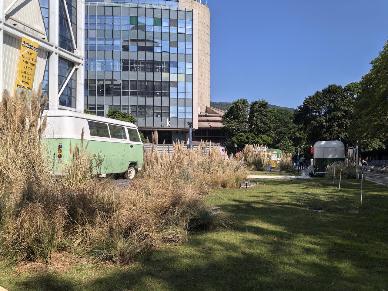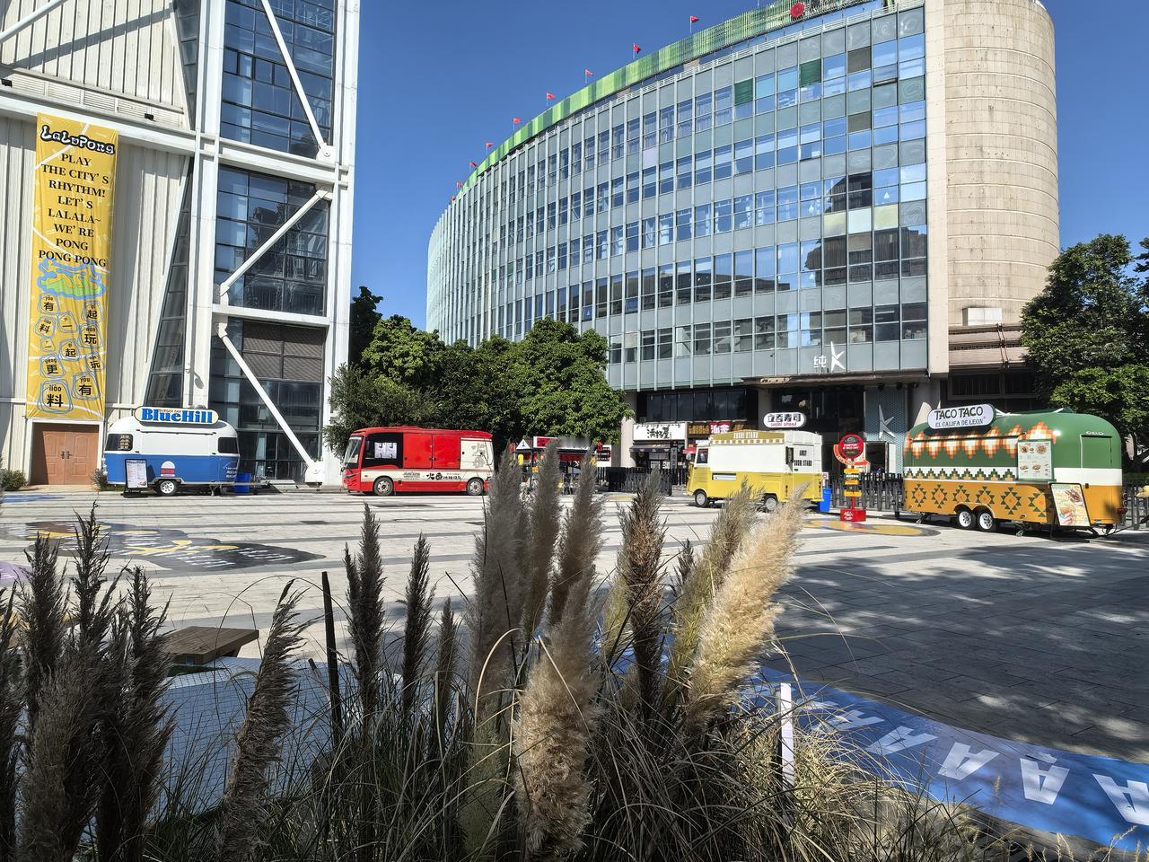 厦门体育中心综合体育馆前小广场(靠近奥永广场和蓝湾国际)开始搞活了,拉来多辆复古小巴士准备卖东西,种上芦苇,摆上沿街坐凳,贴上广告,氛围造起来。当下环境,大家努力搞钱。这里连着文化艺术中心、体育中心、工人文化宫、育秀东路小资一条街,靠近地铁二号线育秀东路站,不知道能不能火起来?