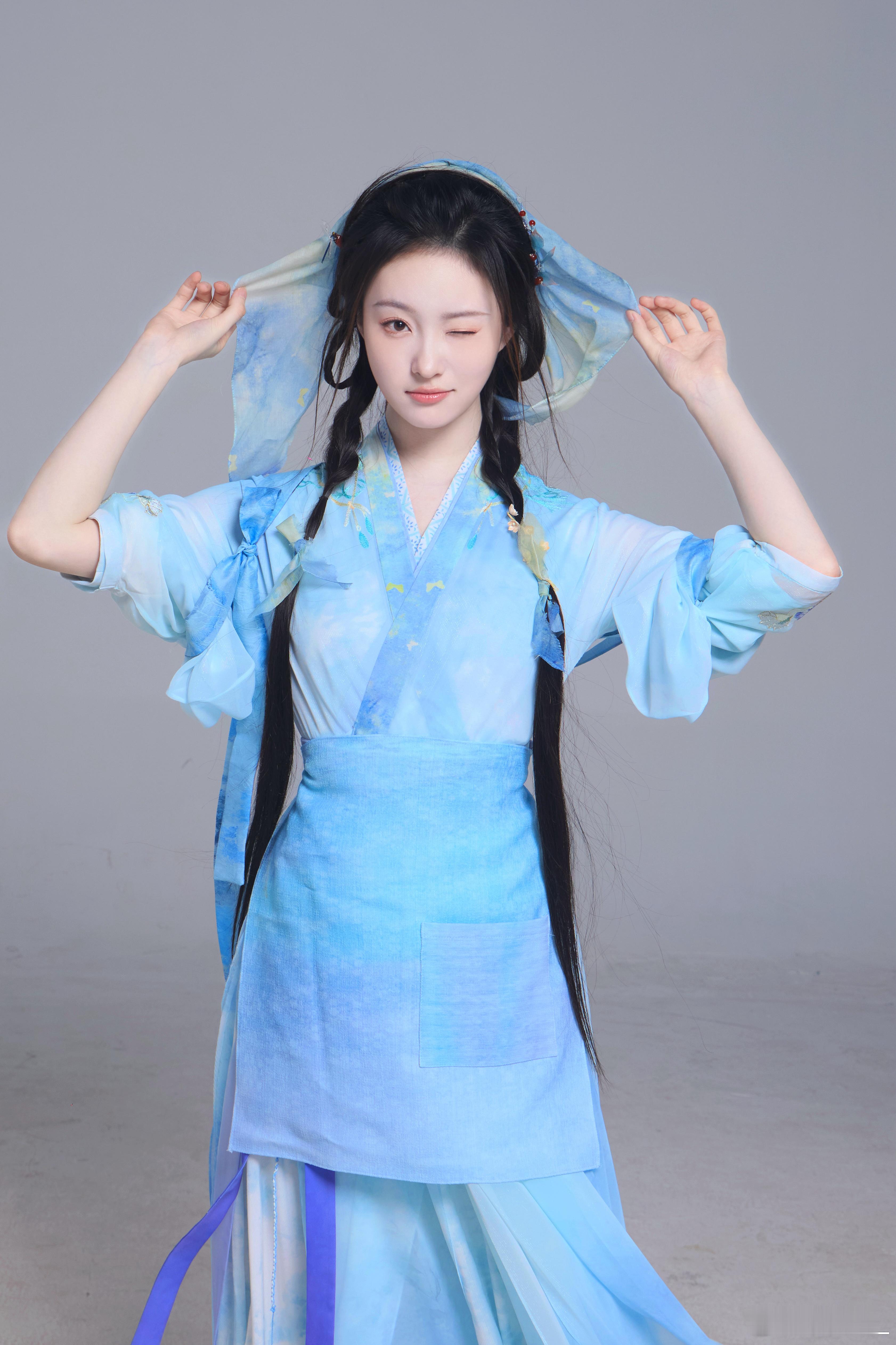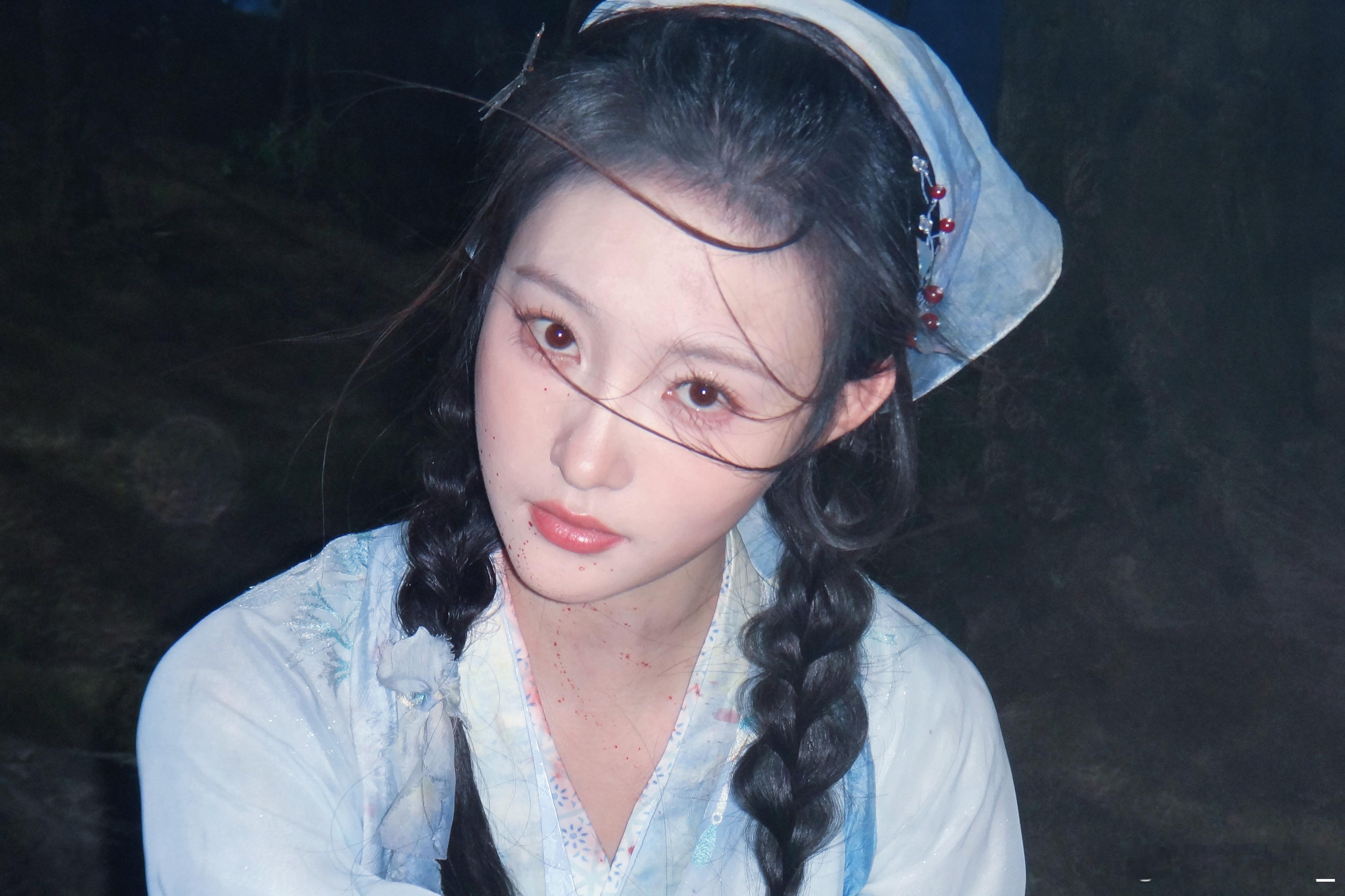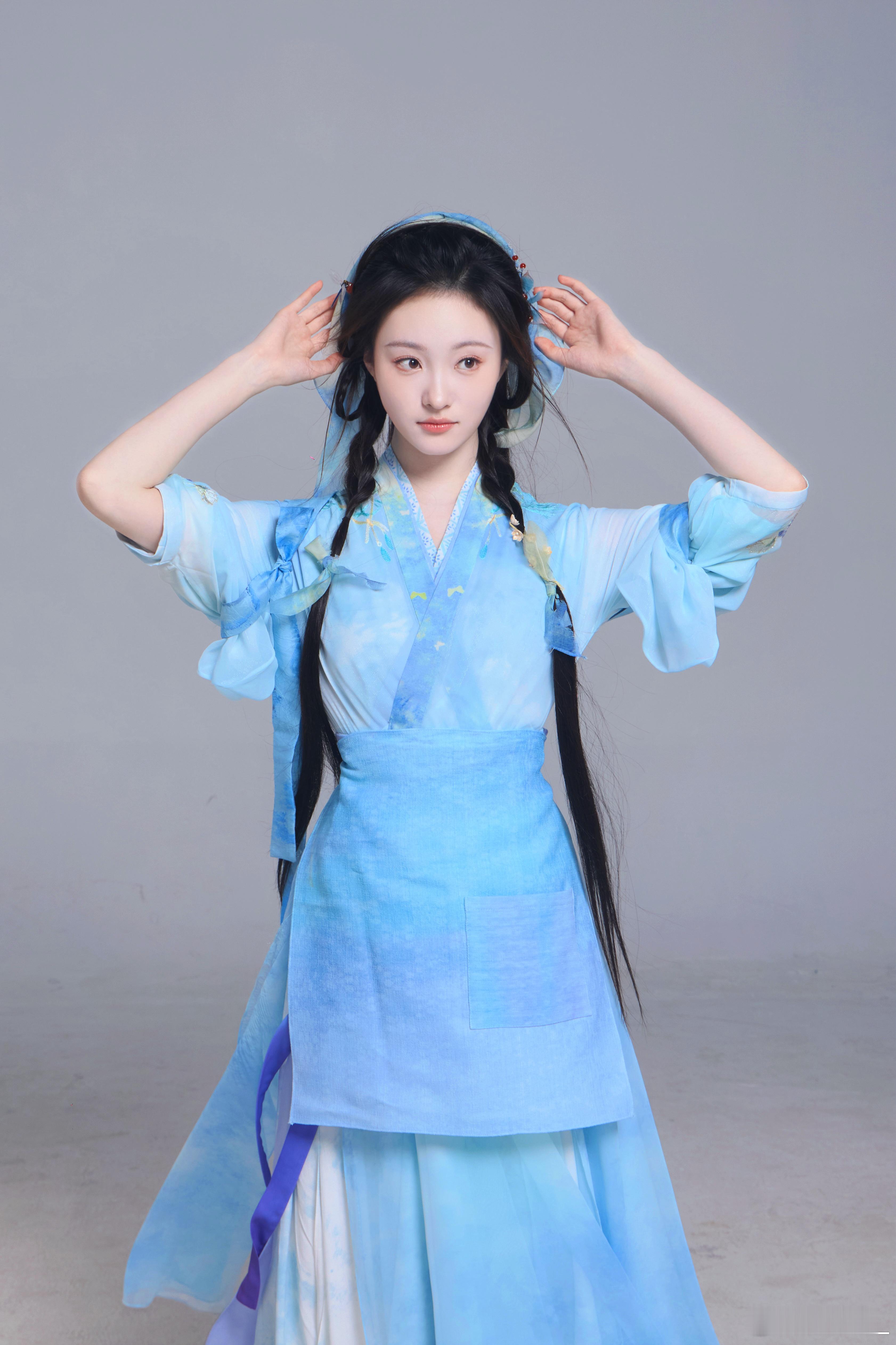 剧照-田园风-头巾+麻花辫+发绳+蓝衣