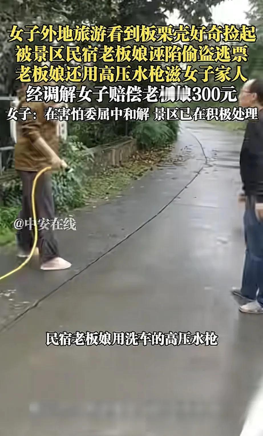 连云港文旅怕是哭晕在厕所, 谁能想到自家招牌竟砸在一颗“野生板栗”上! 国庆期间女游客捡颗路边板栗壳瞧瞧,直接被民宿老板扣上“偷盗”帽子, 还用水枪喷人、倒地索赔, 最后游客倒赔300块。 最讽刺的是, 本地网友说这树是景区野生的, 官方都鼓励捡, 老板却硬说是私人的。 这哪是护财,分明是砸地方招牌! 景区想靠口碑出圈, 就得管管这种“碰瓷式宰客”, 毕竟游客带的是钱, 不是受气包。 你们遇过这种“小事变敲诈”的糟心场景吗?连云港板栗