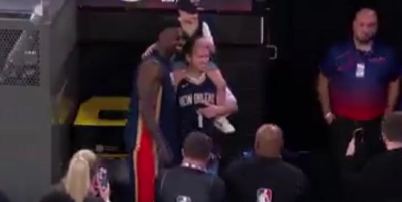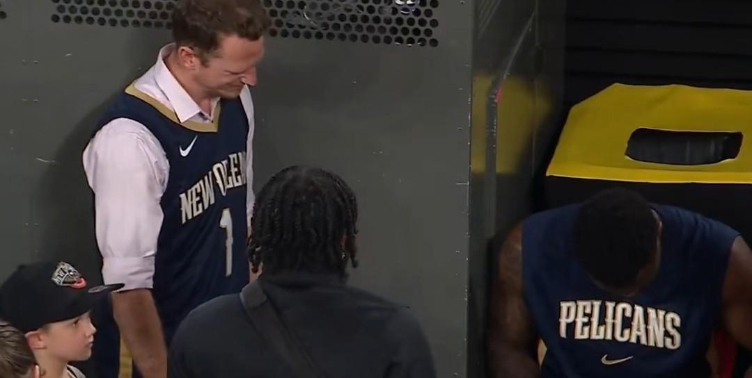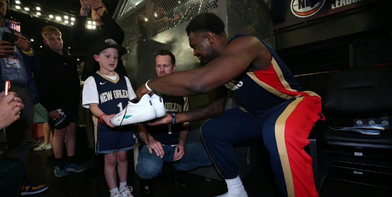 锡安难得的温情时刻,他送给一个病后的小球迷自己的球鞋。 鹈鹕在澳大利亚打完比赛之