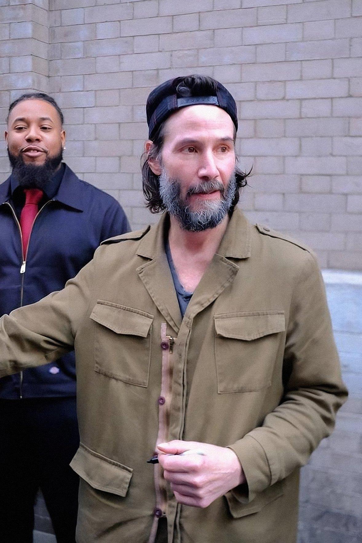 61岁的基努·里维斯现身巴黎,胡子都白了。