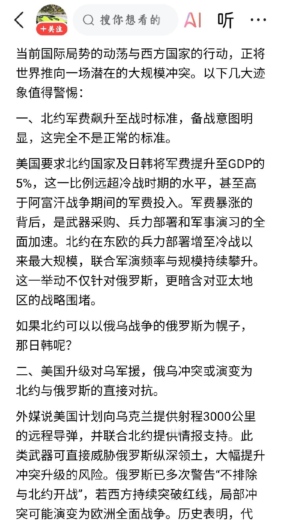 战争预警 个人认为:这说明欧洲备战,是在为将来美国作为主力发动的战争,欧洲作为奴仆军参战。 北约-欧盟已经被俄罗斯打得破产,资不抵债。所以欧洲才不得不备战,因为国内的压力,迫使的欧洲不得不选择战争,因为战争是解决债务危机最简单而又见效巨大的方式。何况这是看家本事,祖传手艺。