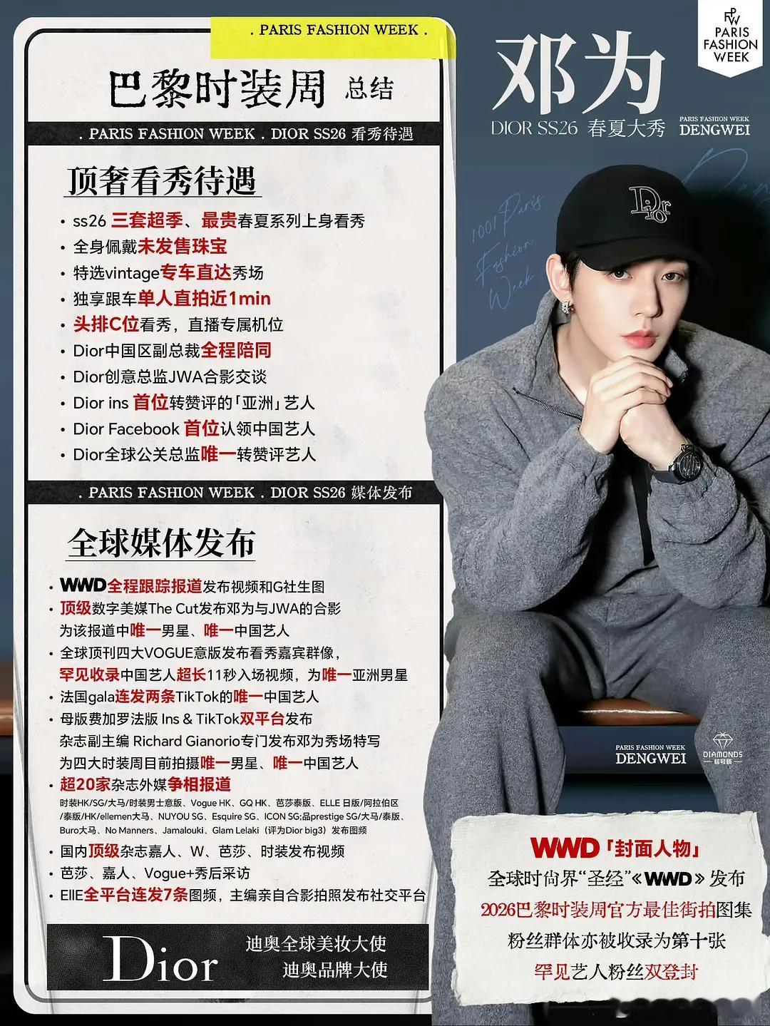 Dior在外网认领了邓为,唯一以视频方式(古董车内跟拍)呈现的中国艺人,也是Dior 官方 ins 认领的第一个中国艺人