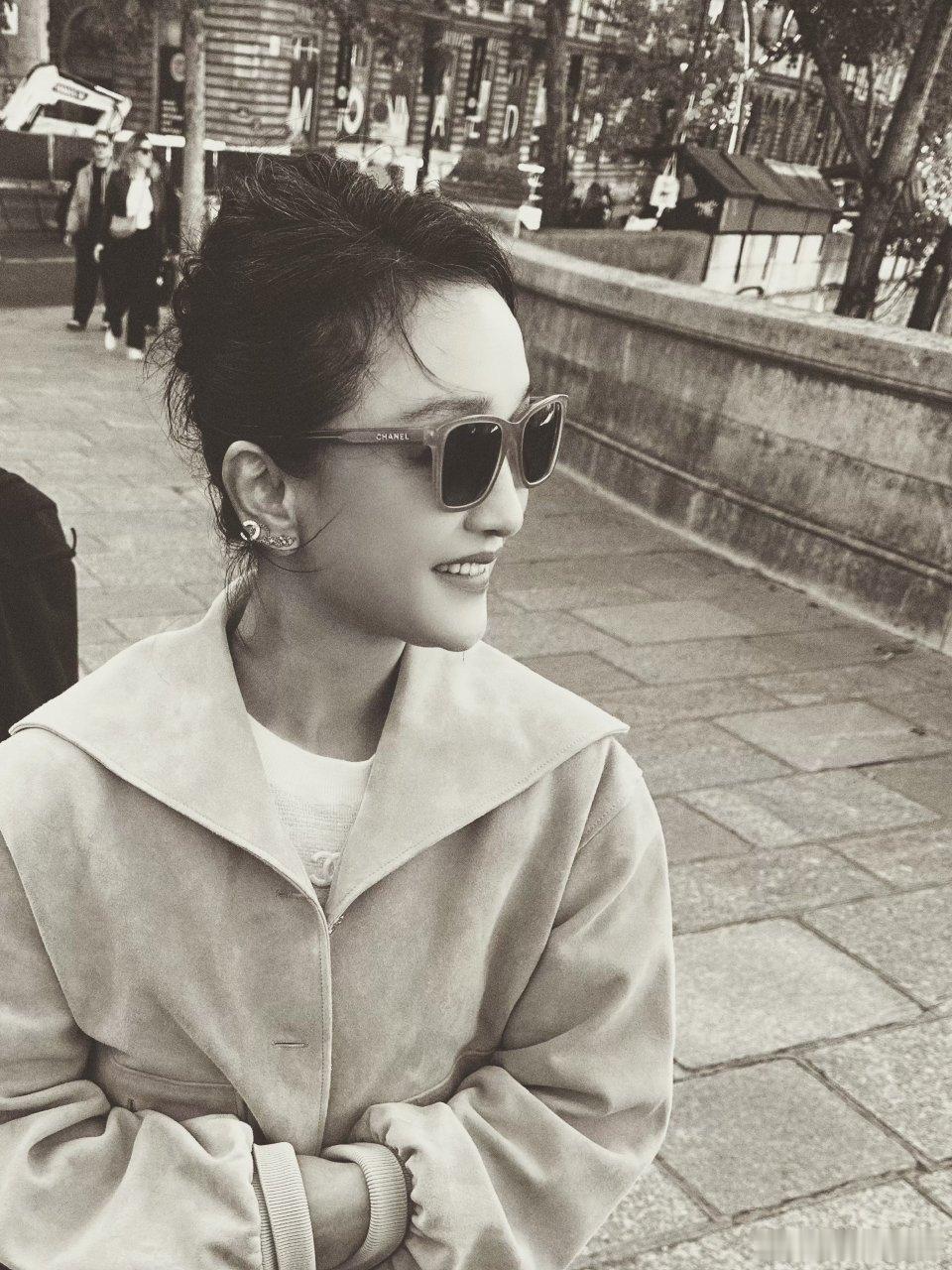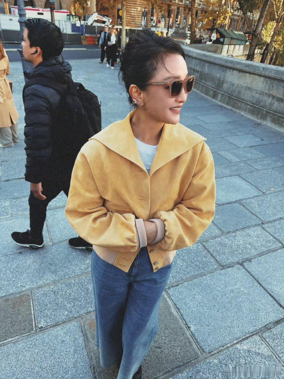 周迅的白发好优雅果然岁月永不败美人!!周迅这身简单但是很有气质啊[心][心][心]周迅巴黎秀场露白发不掩饰,米黄外套配牛仔裤超优雅。