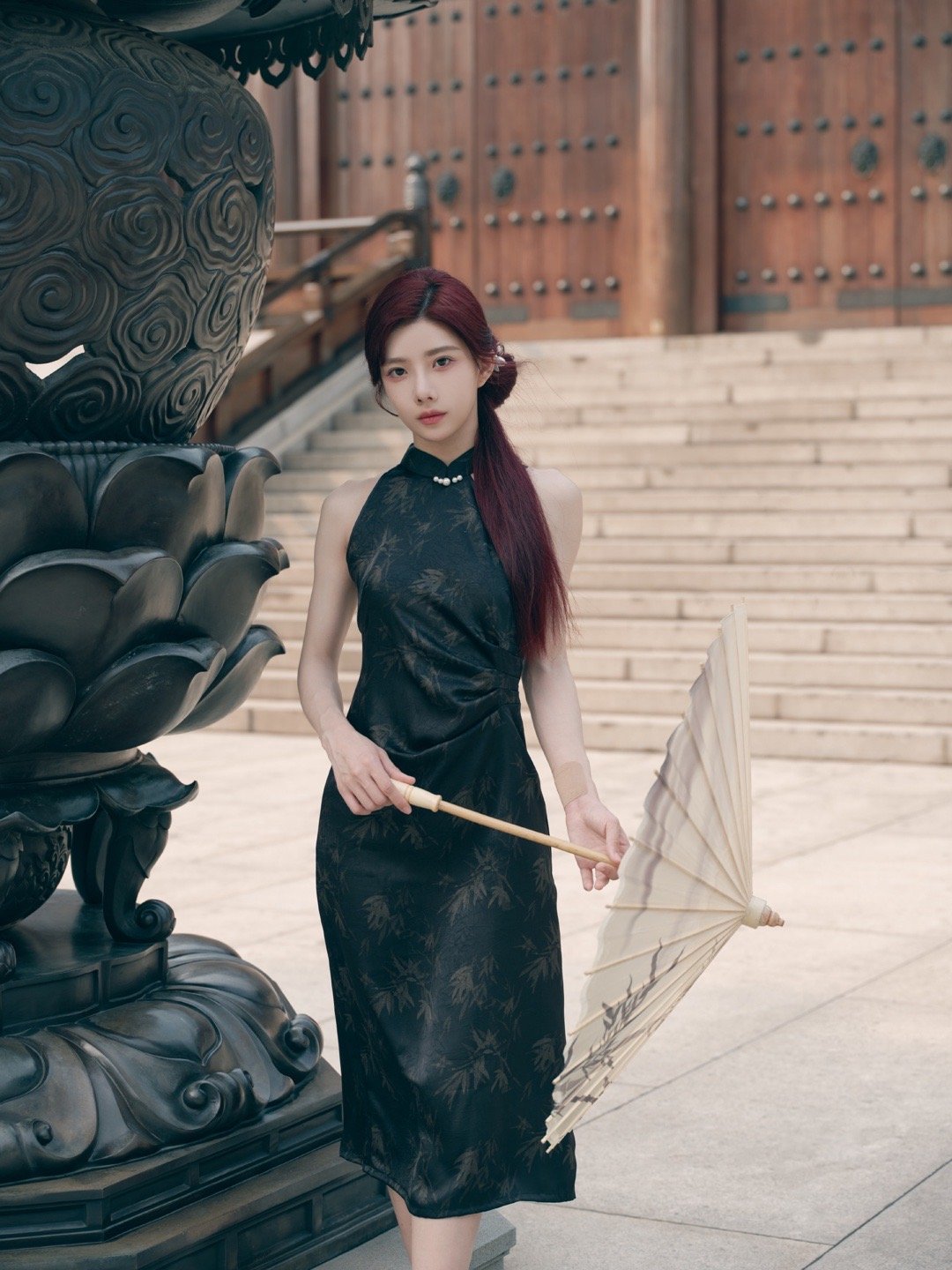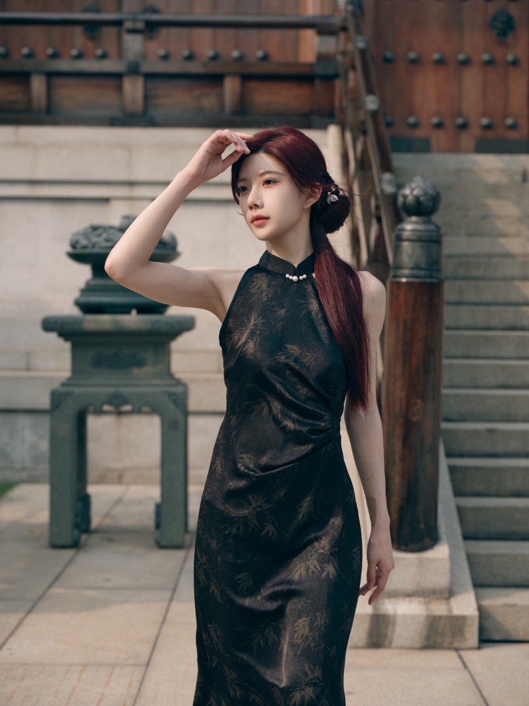 沈梦瑶中秋营业沈梦瑶中秋营业🈶国风黑色旗袍古韵感十足温婉优雅好美,中秋快乐!