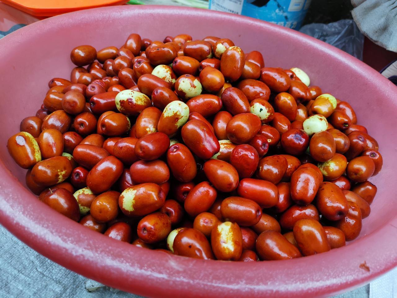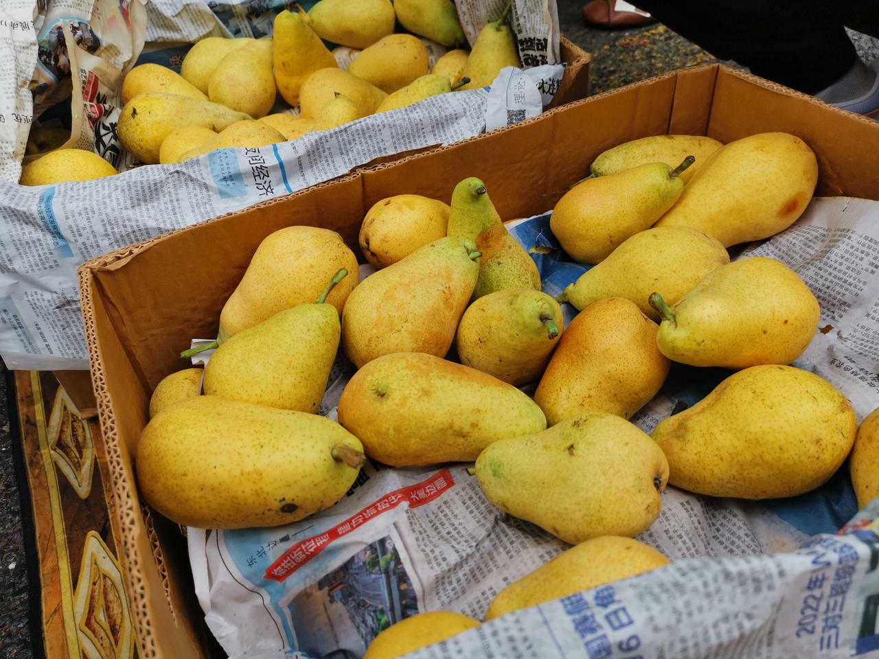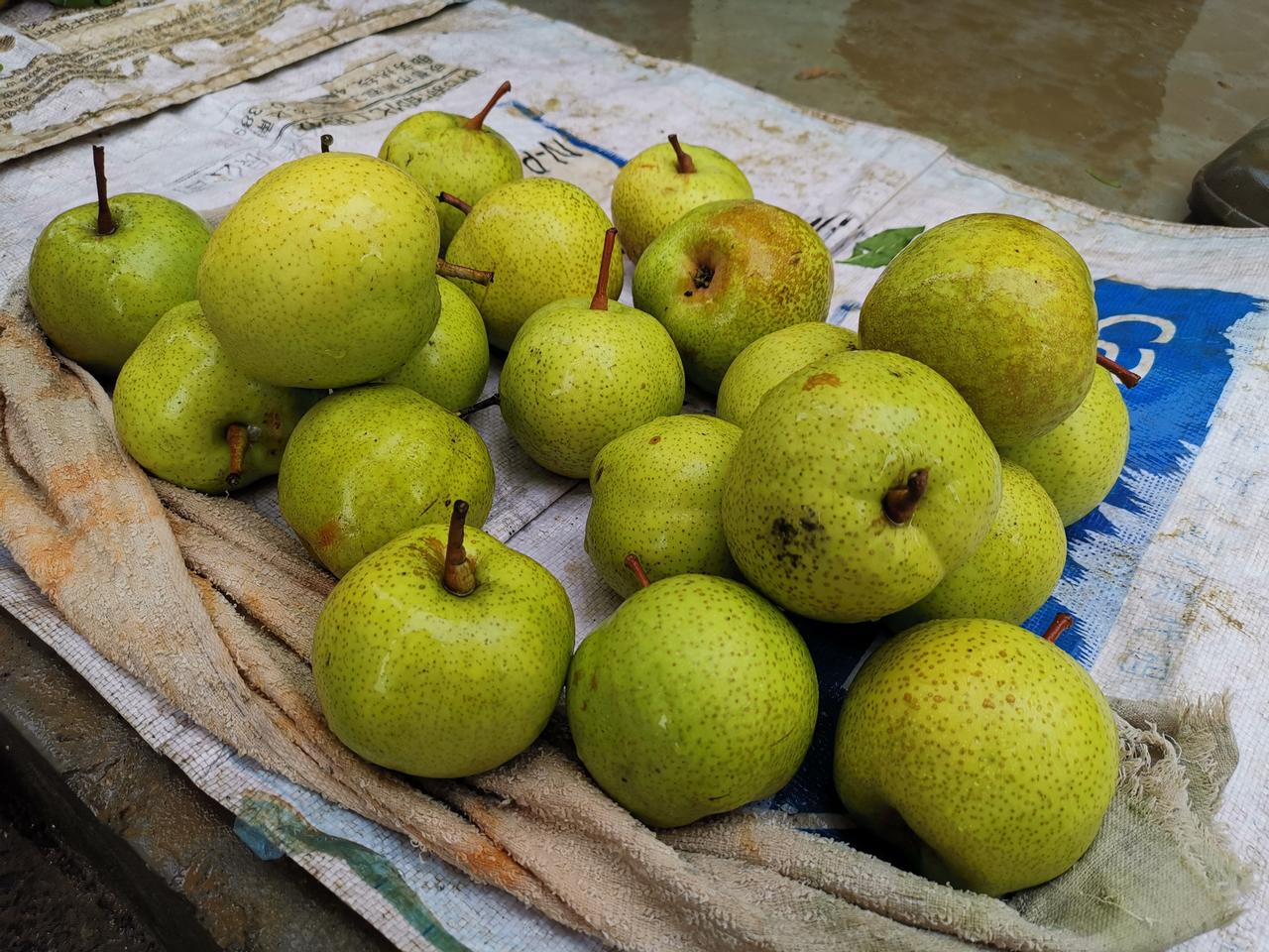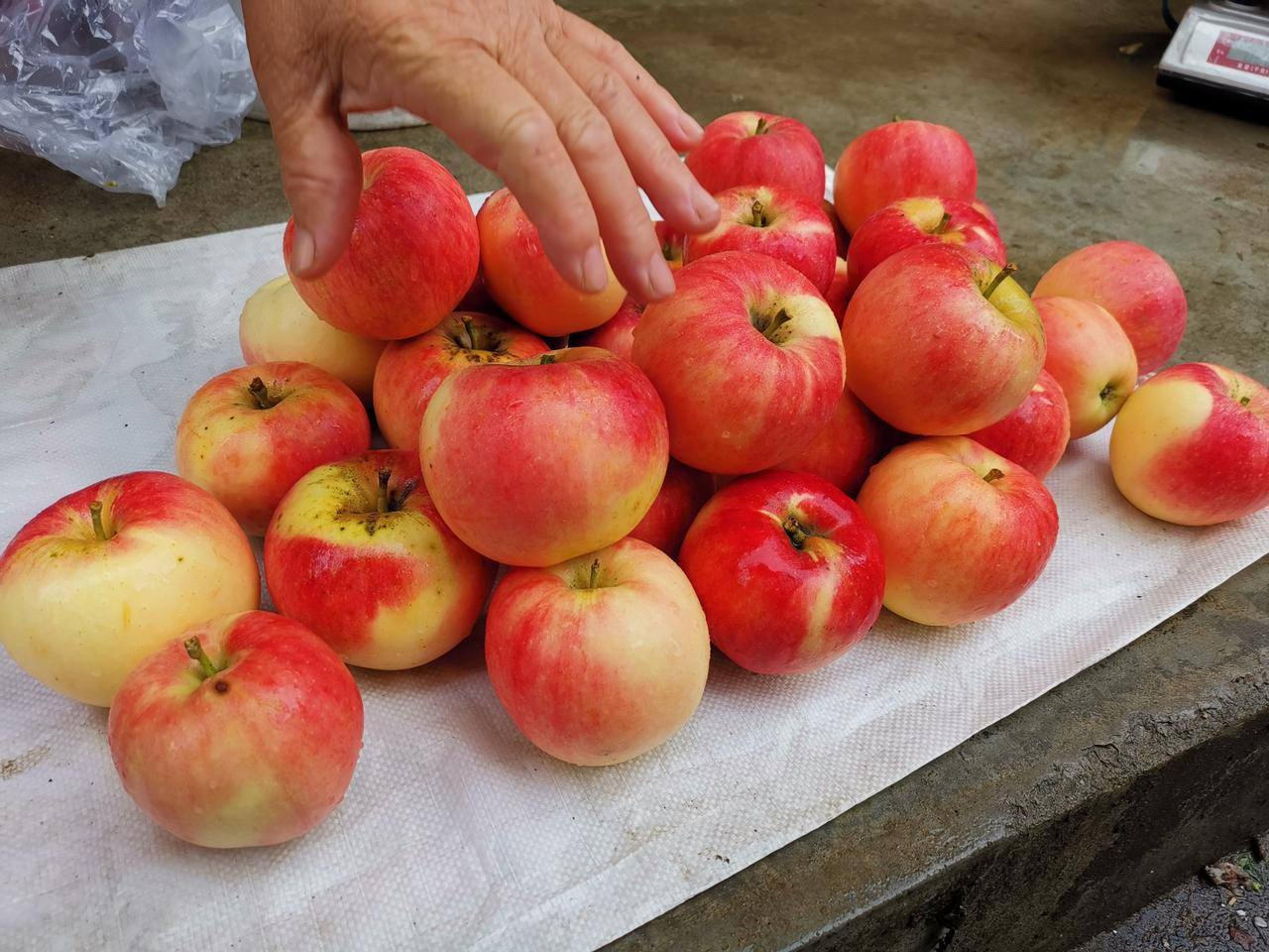 今早逛大连市旅顺口区上沟市场,看到地摊上出售的当地老品种水果,忍不住每样都买点。