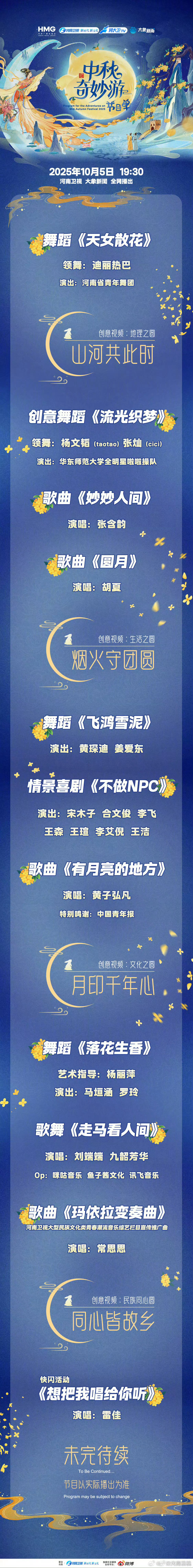 哔站、河南、北卫、湖南、🐏视中秋晚会节目单出炉