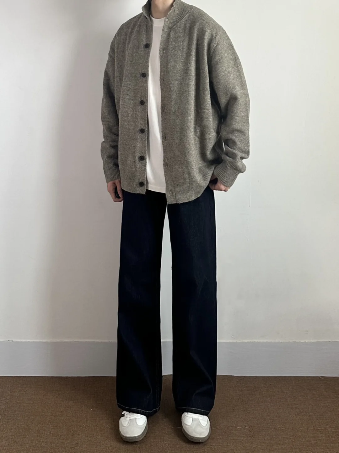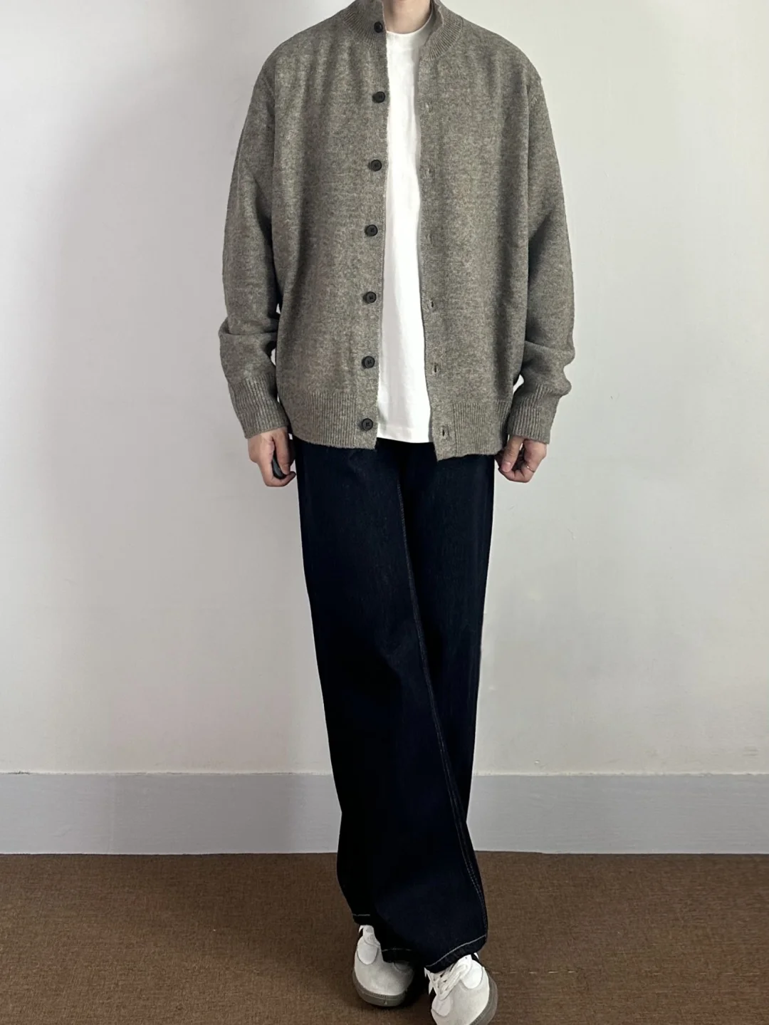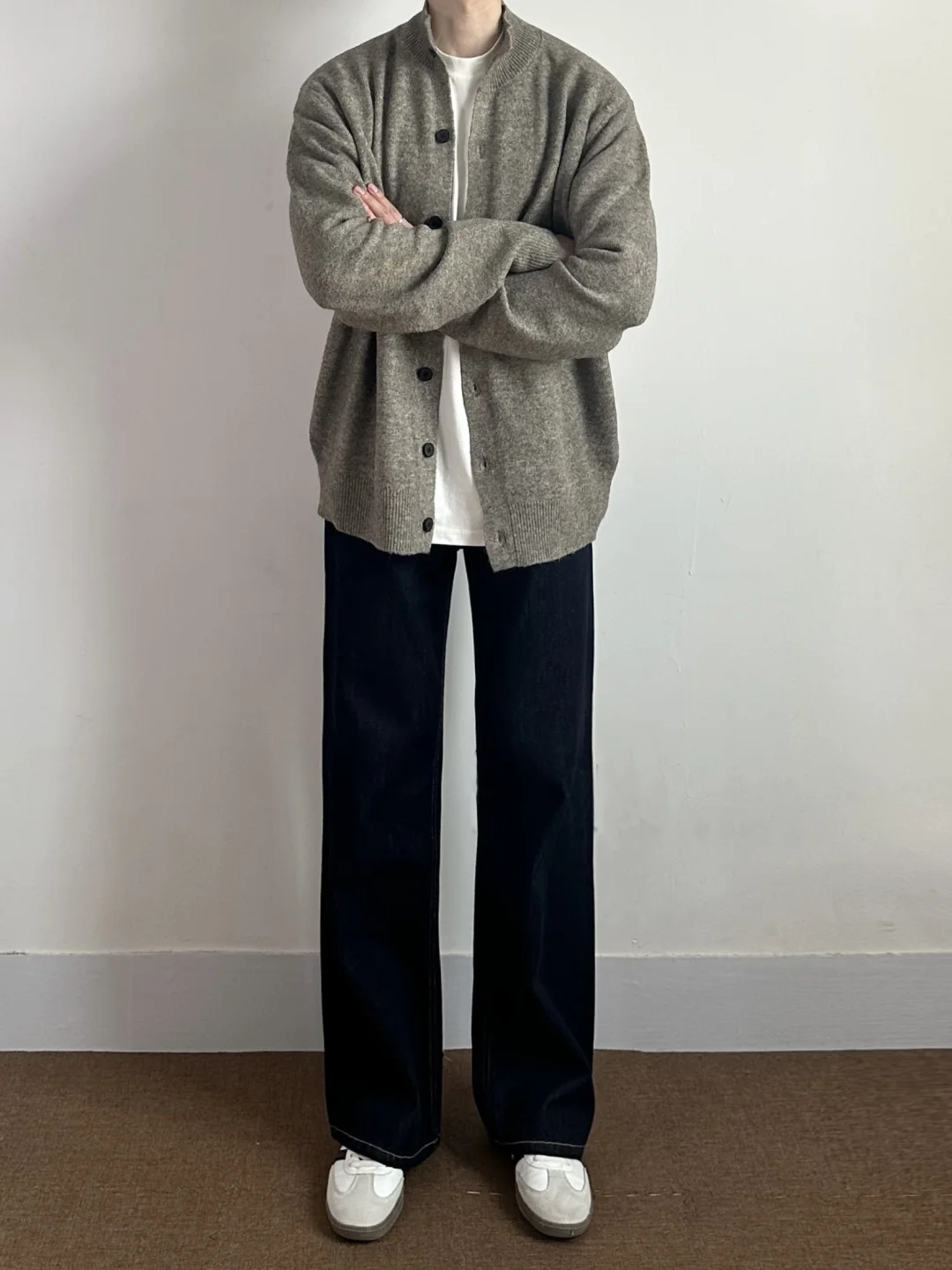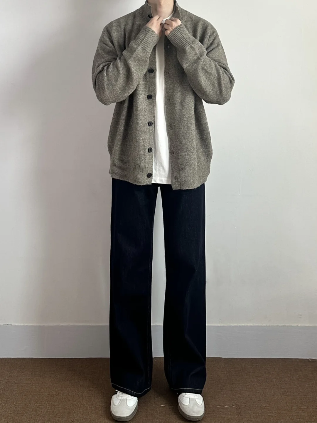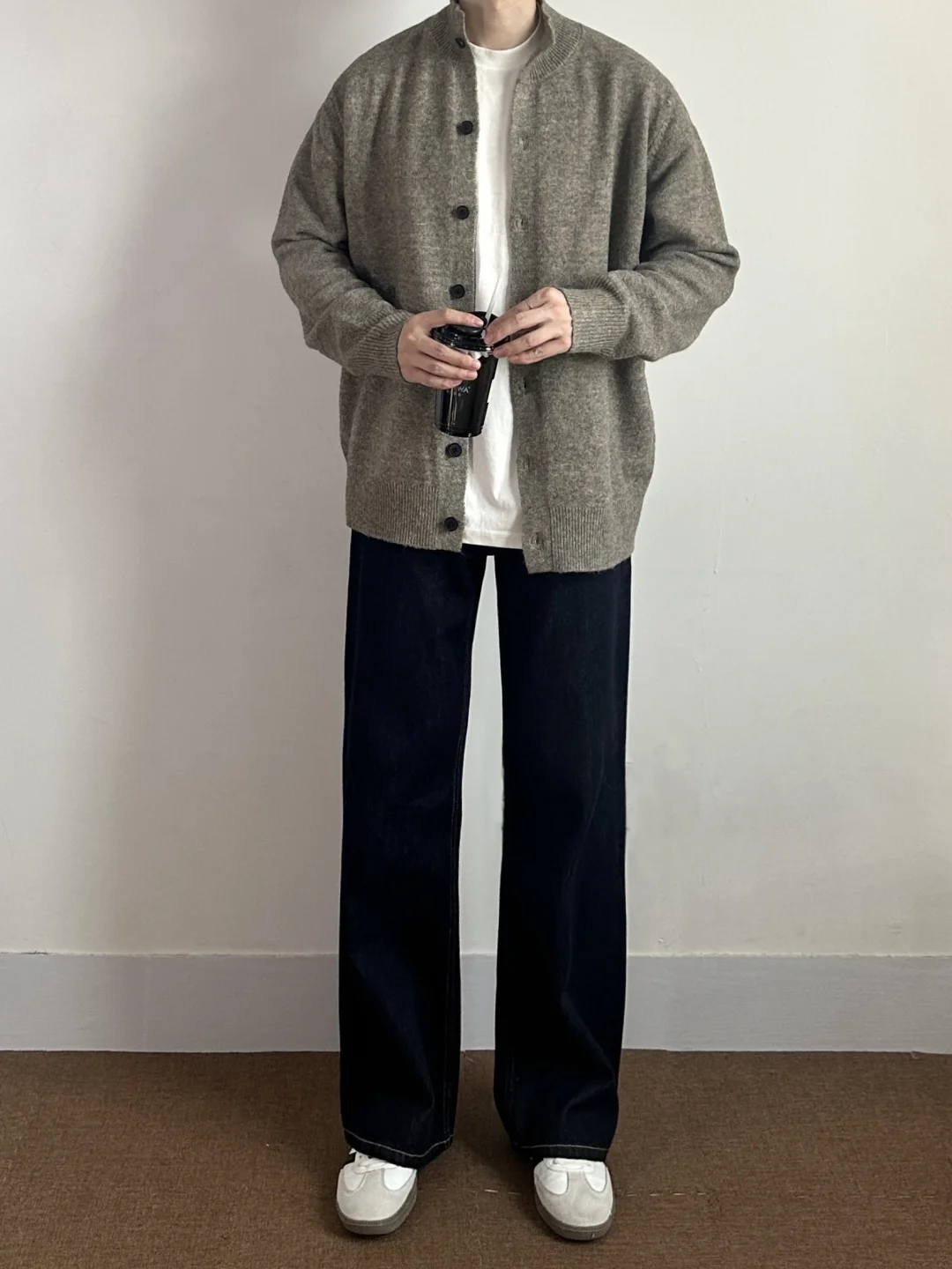 秋冬就爱这种毫不费力的松弛感!针织开衫版型宽松又有质感,内搭白T简约干净,搭配深色阔腿牛仔裤和小白鞋,随性又显高。