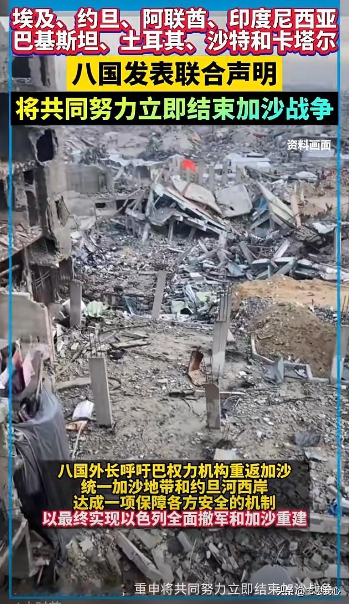 一边是加沙饿死460人了,另一边是八国外长呼吁立即结束加沙战争,然并卵! 今天早上一早,在电视上看的先后两个滚动新闻,先是“加沙地带因饥饿和营养不良死亡人数已经达到460人”,也就是饿死吧,营养不良也是被饿的啊;接着是“八国外长呼吁立即结束加沙战争”。 所谓的八国,即埃及、约旦、阿联酋、印度尼西亚、巴基斯坦、土耳其、沙特阿拉伯和卡塔尔这八个国家,也就是站巴勒斯坦这边的,其中不乏埃及、沙特、土耳其、巴基斯坦和印尼等伊斯兰世界的5个大国了。这些国家的外交部长的联合声明重申将共同努力立即结束加沙战争。 其实,在我看来,所谓的八国外长声明,结果只能是“然并卵”。这样的声明还少吗,这两年来,联合国、各国、各组织的,少说也有几十个了吧,但是所谓的“立即”,只能是遥遥无期! 因为,没有最后期限,2年前的“立即”,今天还是“立即”,或许2年后还是“立即”! 因为,这是要用战机、导弹、枪炮说话的事情,没有军队在后面支撑,就想用外交人员的几句空话,那也太便宜,太痴心妄想了。 联合国的调查结果都认定以色列在加沙搞的是“种族灭绝”了,但是联合国没有军队,奈何不了以色列。伊斯兰国家,假如没有军事力量在后面支撑,如“一个月内不退兵,则联合出兵干涉” ,这样的外长联合声明发100次也没有用! 只是,战争的代价太高了。很多年前,埃及和以色列和解后,已经很难再打之前的“中东战争”了,因为没有埃及带头…… 宁为太平犬,莫作离乱人啊! 书慰我心说国际时政