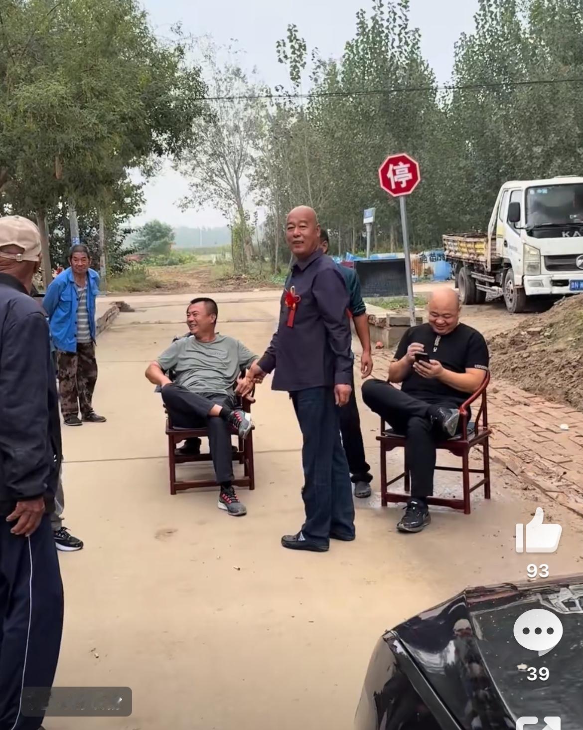 一群农村中年人列队门前,阻拦婚车讨要喜钱,事发山东某地农村,车牌号鲁N。以往都是一些不要脸的老人干这事,没想到这种歪风邪气蔓延到中年人,只见他们嘻嘻哈哈,一人搬一把椅子坐在路中间,排着队,非常放松、自然,压根不认为这有什么不合理,见不得人。看衣着,也不像是家里揭不开锅的人,就差这三瓜两枣,靠这个能发财?拦婚车陋习 婚礼拦车要红包 农村拦婚车 光天化日拦婚车