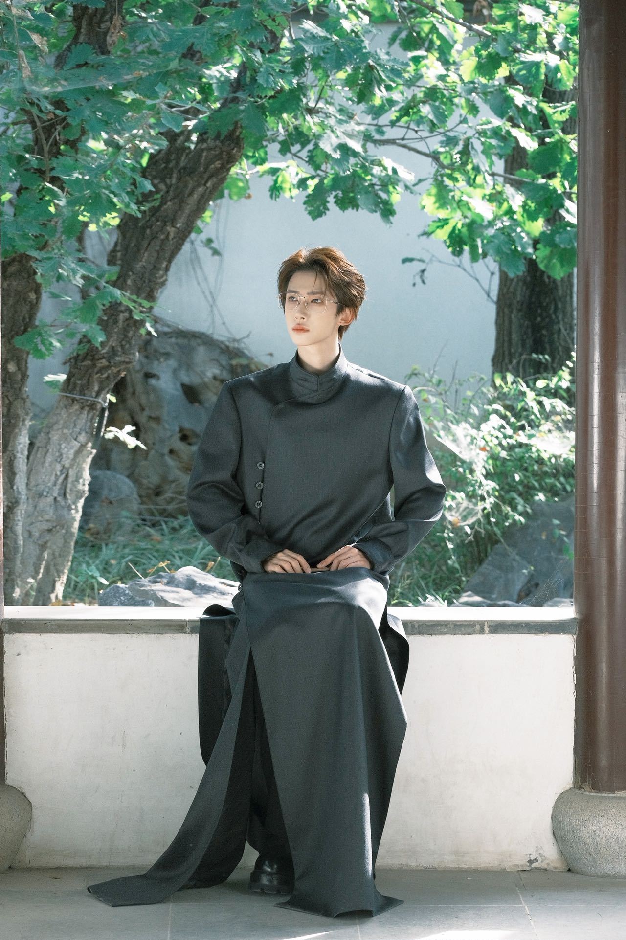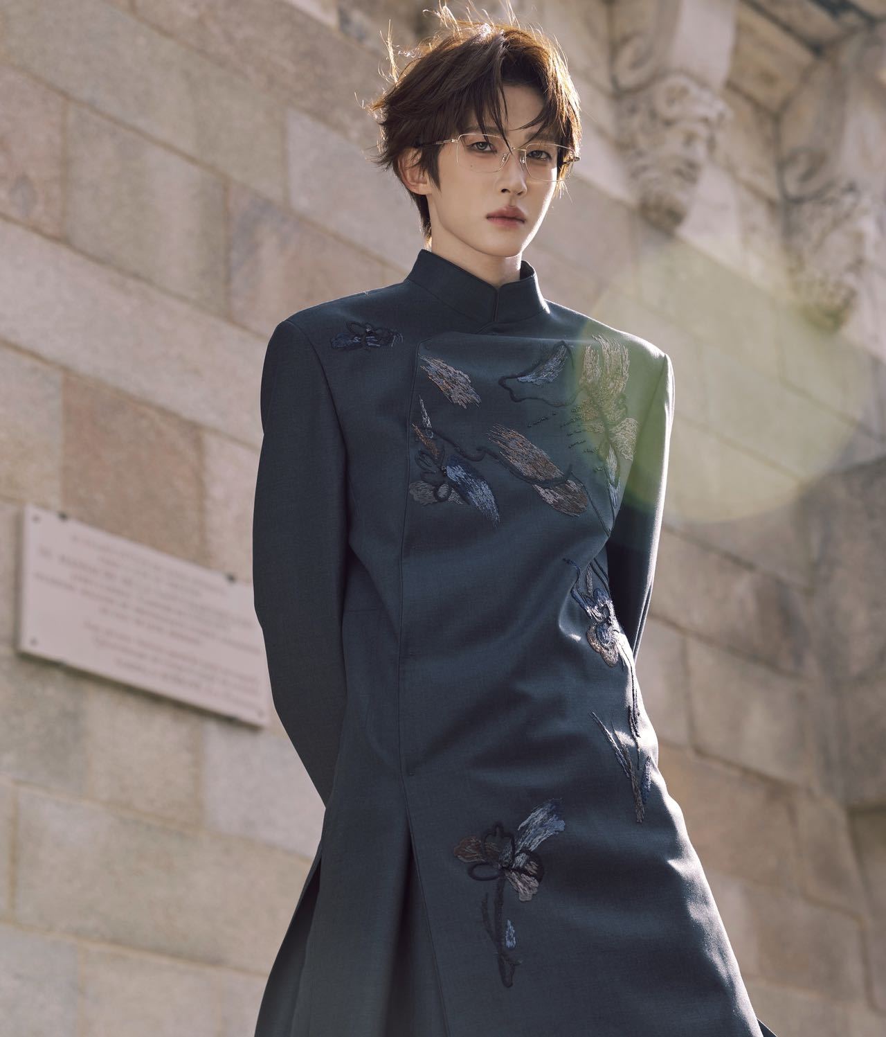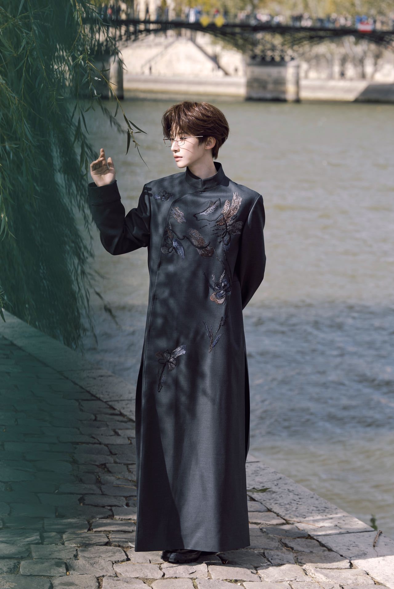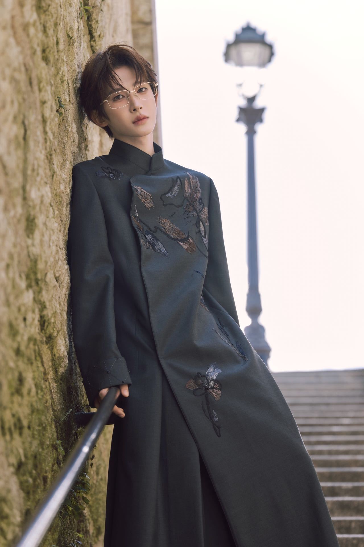 刘宇身着 SHIATZY CHEN 特制长袍。整身造型在古典与现代间取得完美平衡,优雅而自信。
