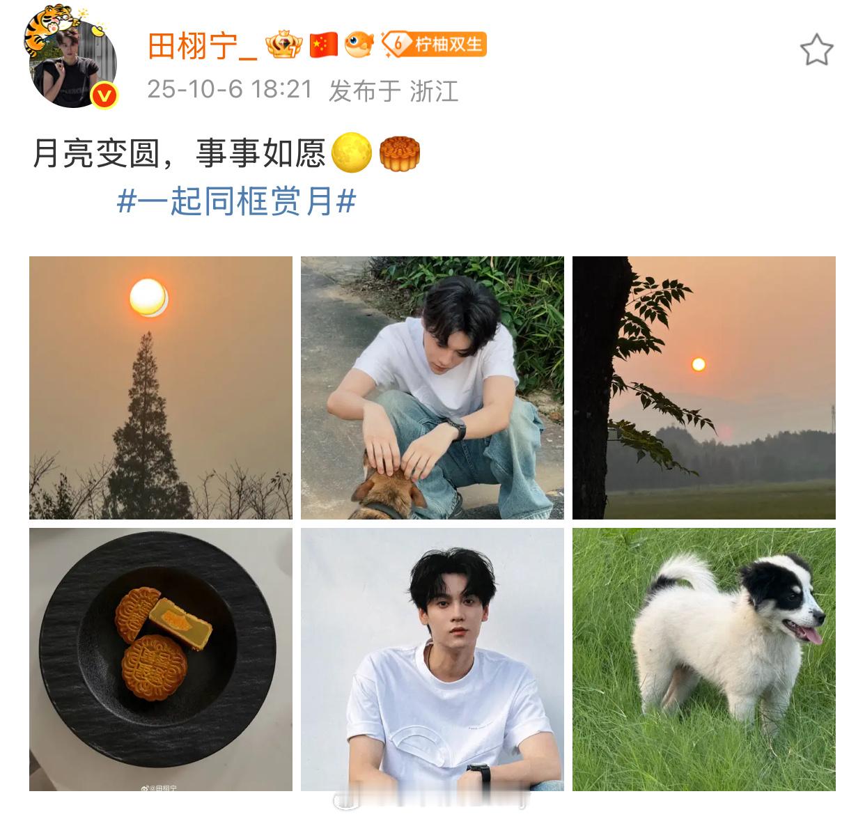 田栩宁中秋营业~祝大家中秋快乐[憧憬]大帅哥还是很爱分享狗狗,很有sense的一组图[yeah] 田栩宁中秋营业