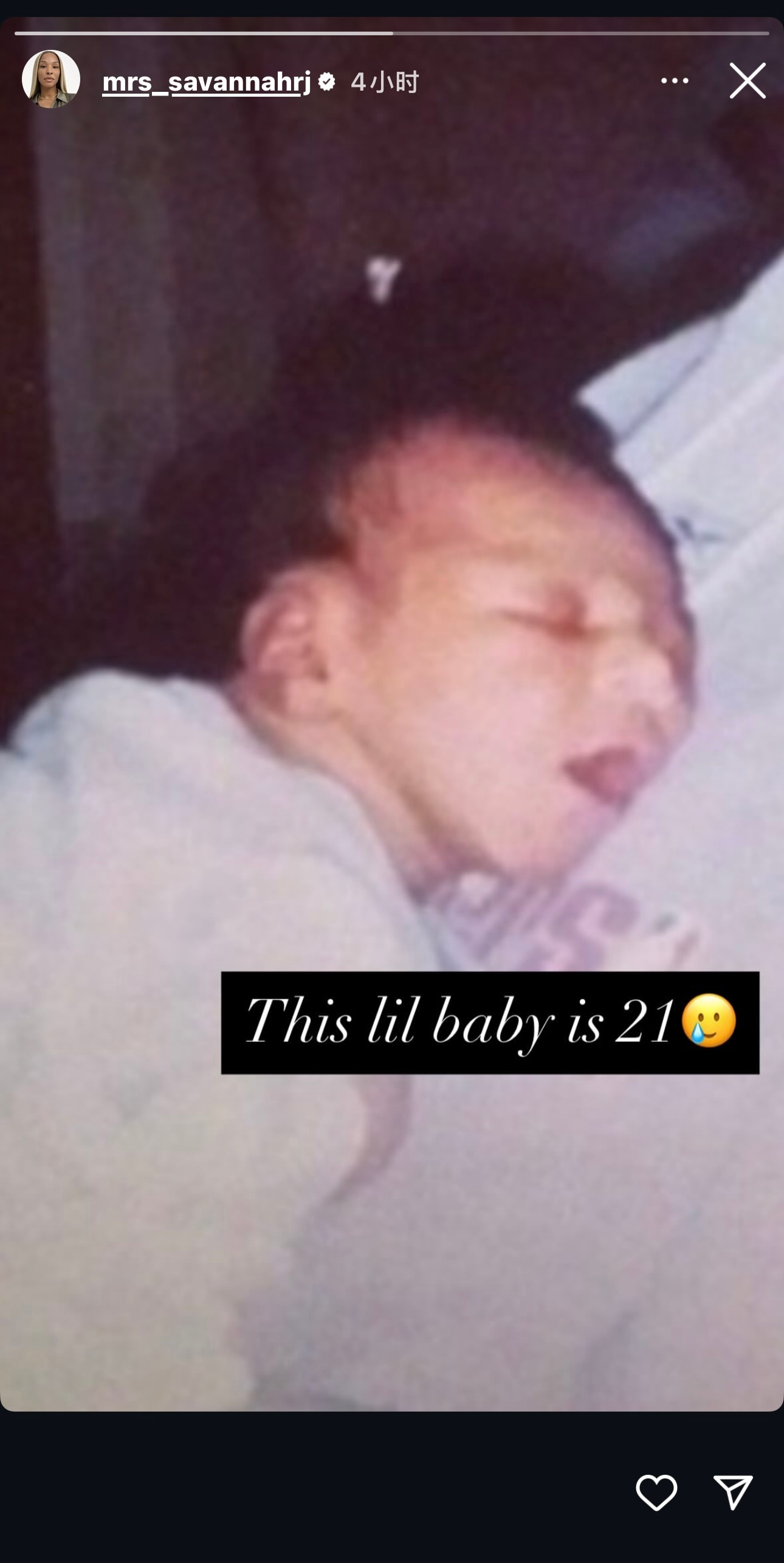 “我的第一个宝贝今天21岁了😢 这本可能走向两种结果🤣 但我对如今成年的你充满信心,所以我没有泪水,只有感激。感激上天选中我,见证你长成今天的模样。我为你祈祷,愿你拥有无尽的幸福、健康、快乐、成长、勇气、内心的平静,以及溢出的爱!!生日快乐,@ Bronny !!!🎉🎉🎉🎉🎉🎉 我对你的爱无法衡量👩❤️👨💖 哈哈!