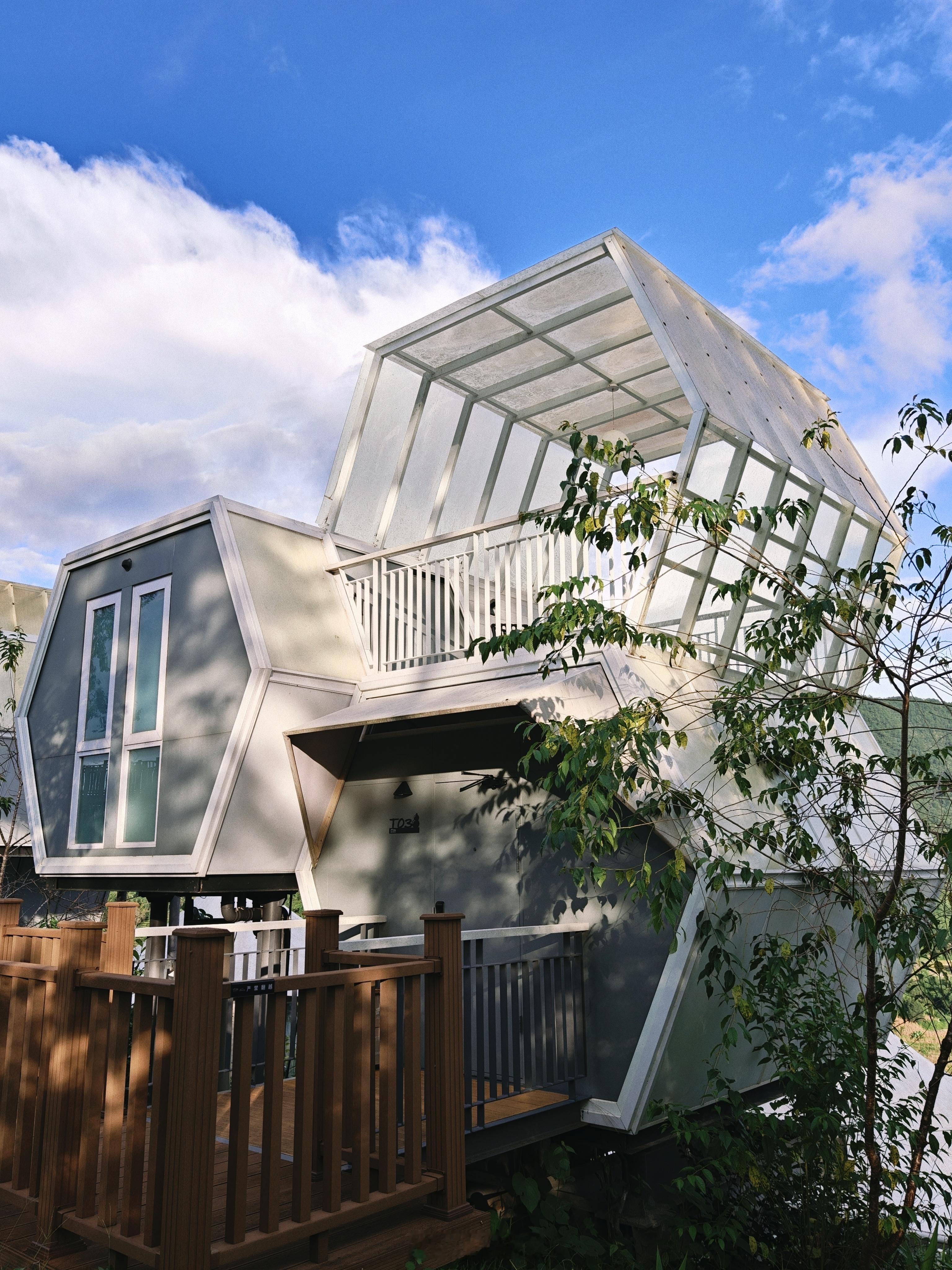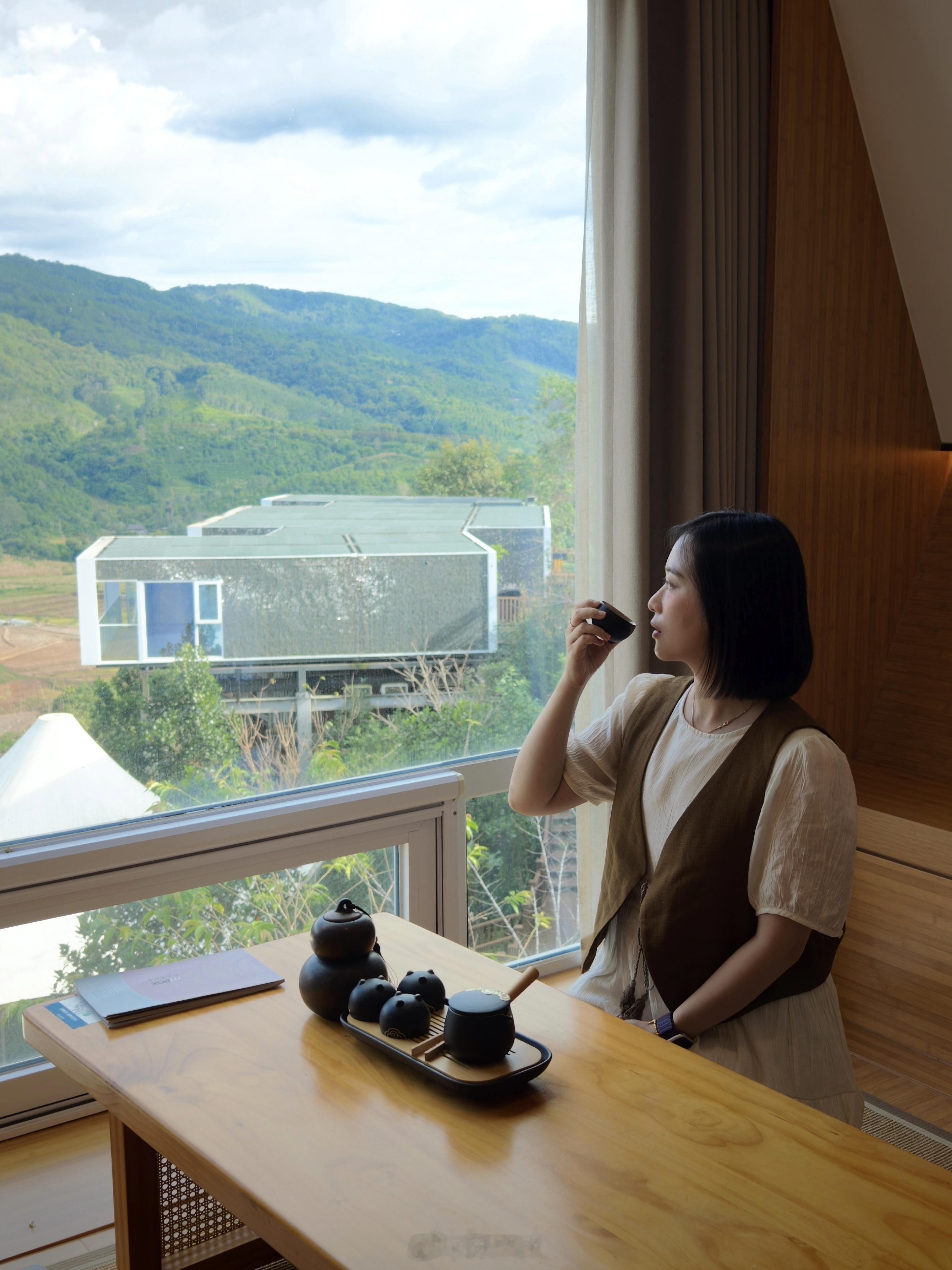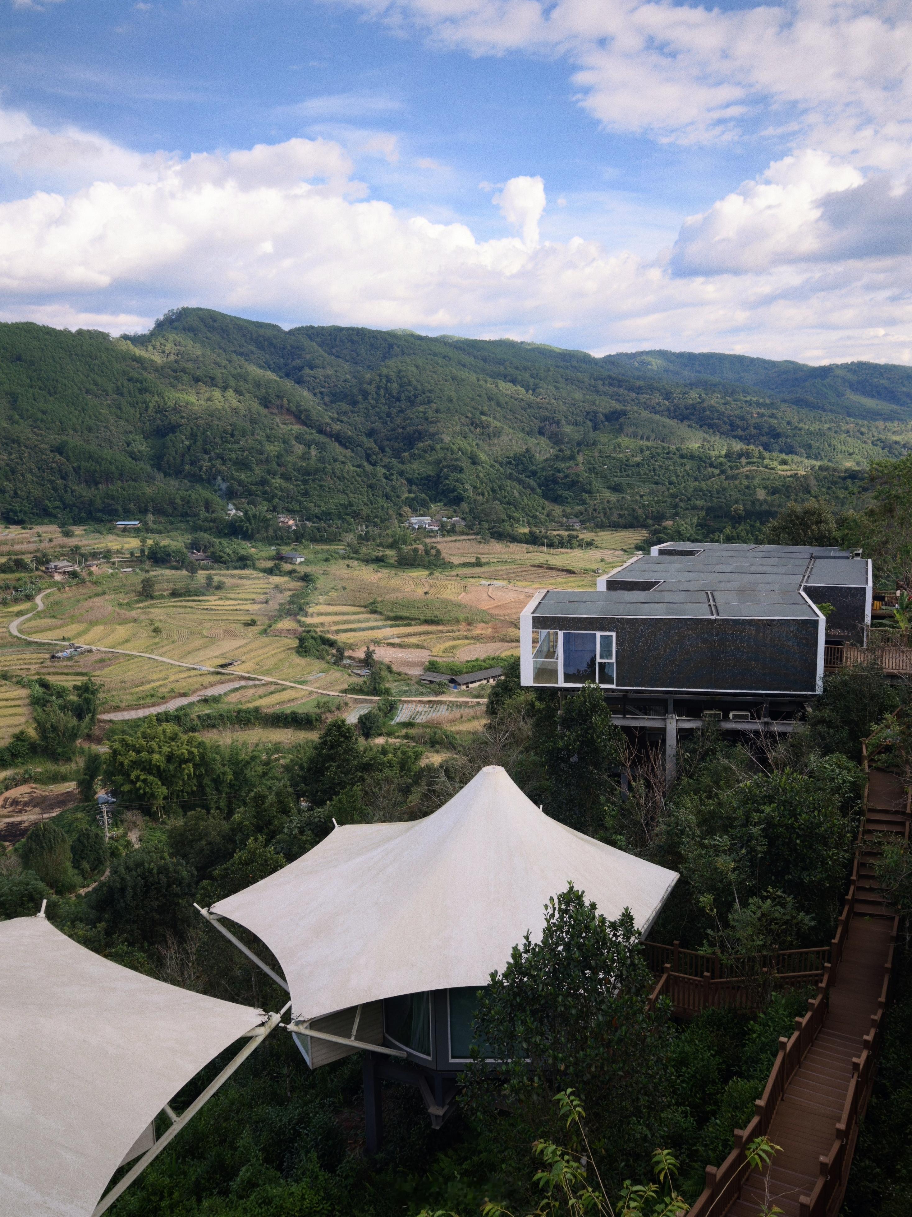 今晚我们选择住在当地最有特色的酒店,一座依山而建的酒店,不仅风景漂亮,它还是当地沪滇协作的全国乡村振兴样板项目,蜂巢设计很有意思。