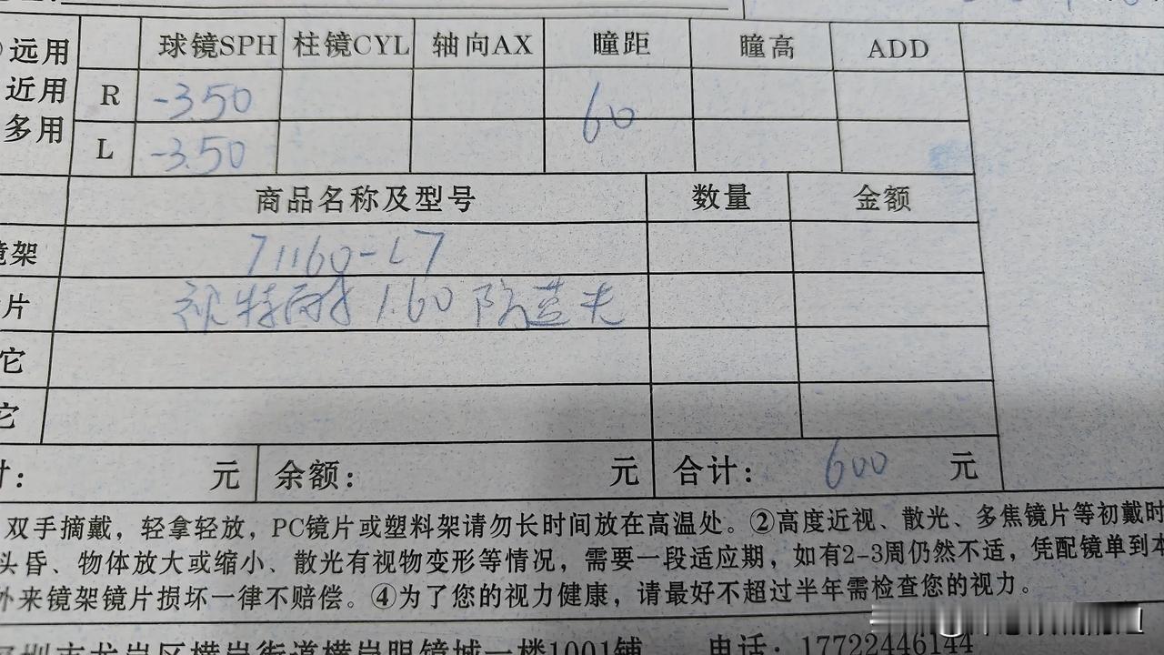 横岗眼镜城,600一副眼镜,贵不? 老公今天说要配眼镜,一定要去横岗眼镜城去瞅瞅,都说横岗眼镜城价格实惠,他同事都在那里配的。 之前都没有去过横岗眼镜城,只有以前坐地铁经过,看到过招牌,而且横岗眼镜城也很出名吧,很多人都知道吧。 我们一进横岗眼镜城,里面各种牌子的店铺,感觉有点眼花缭乱,一进门,感觉每个店铺的人都在喊你,要不要配眼镜。 瞬间感觉到了华强北一样,华强北里面组装电脑的店铺也是这样,超级多,一进门都是问你要不要组装电脑。 这种感觉是一模一样的,哈哈哈。老公直奔他同事配眼镜的那家店,先测了一下视力,现在他的视力度数又增加了。 测完视力,选了一下眼镜框,和镜片,价格谈到600。老板说等半小时就可以拿到眼镜了,没想到这么快就能拿到眼镜。 以前,在一些眼镜专卖店配眼镜,都是价格挺高,而且要等几天才能拿到眼镜,相比之下,横岗眼镜城价格优惠一点,也速度啊。记录我的2025