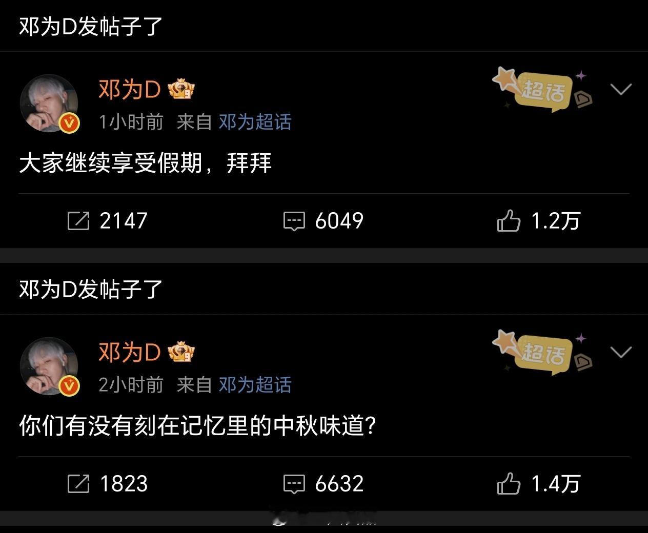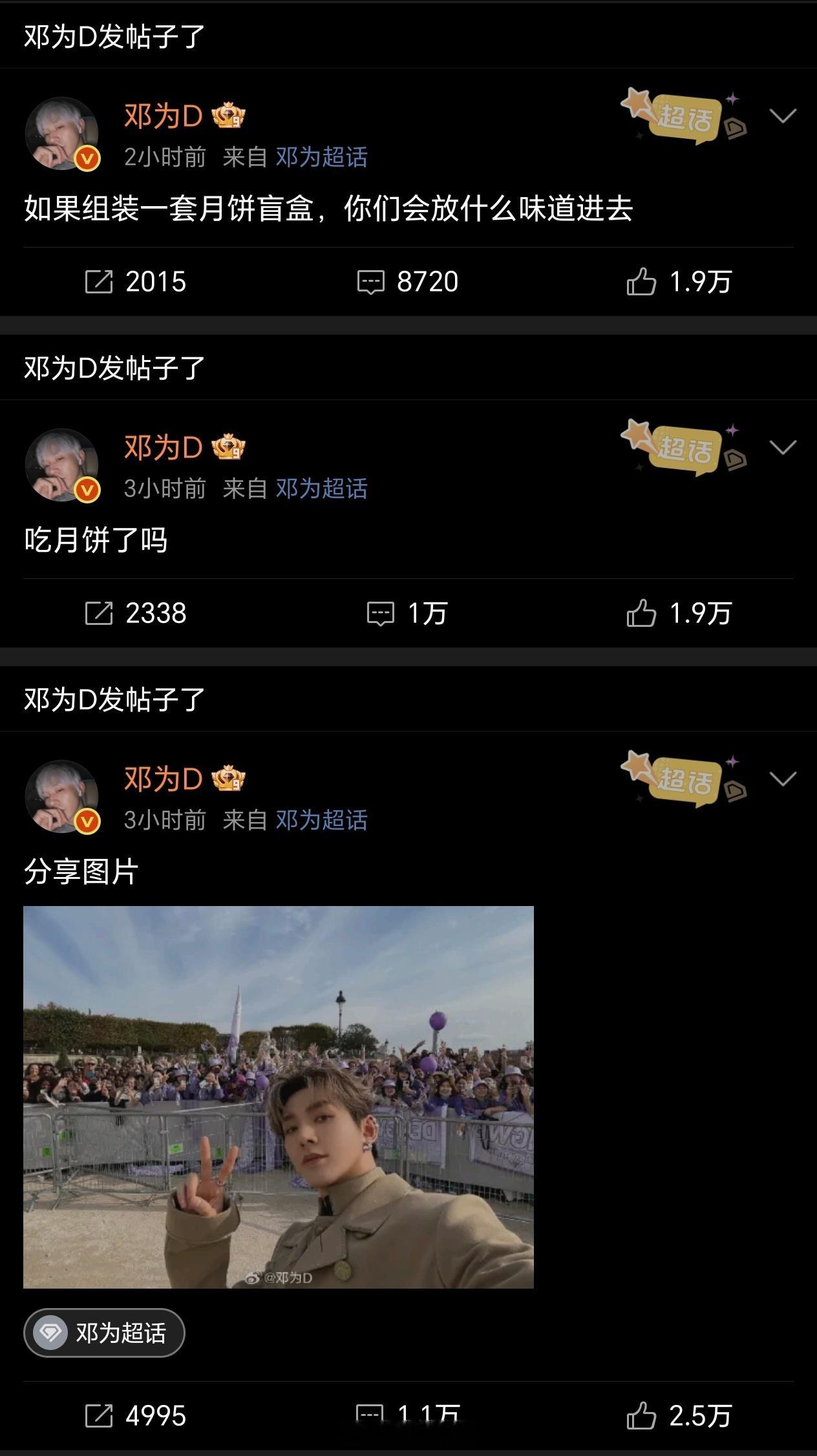 邓为中秋节空降超话跟钻石们聊天两个小时