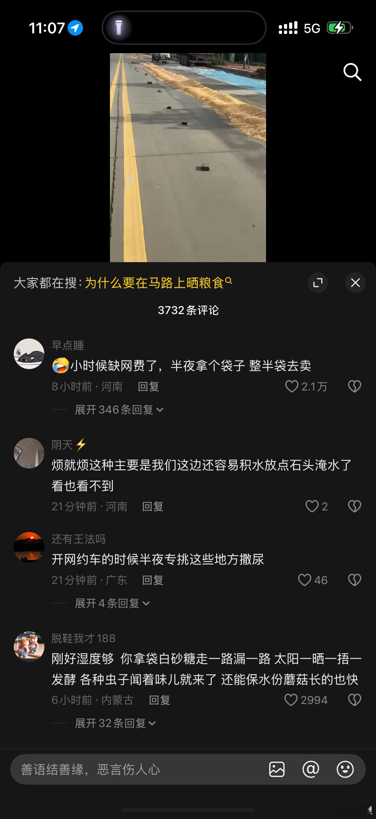 不过另一方面我感觉这些人也挺可怜,这些粮食也不值多少钱,为了这些粮食去忙活,挨骂,应该也是可怜人吧?主要是,有没有不占公路的晒粮食方案?