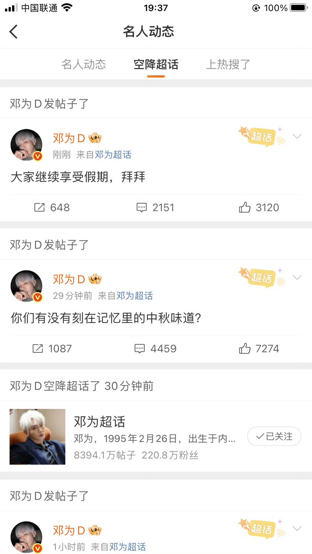 邓为中秋营业陪粉丝聊天在超话待了两个小时,钻为己有双向奔赴了[鼓掌][鼓掌]