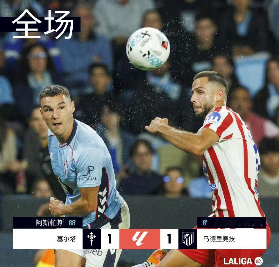 乌龙送礼,十人硬扛,阿斯帕斯又来了。 马竞半场靠对手自摆乌龙领先,下半场朗格莱两黄下场,西蒙尼的防线瞬间裂开。 控球不到四成,射门只有三次,可塞尔塔的传中像潮水一样砸过来——32次,不是运气,是战术压路机。 阿斯帕斯接球、推射,一气呵成。2025年对马竞,他场场破门,不是巧合,是宿命。152球,追平C罗,外籍射手榜第五,37岁还在这儿当“马竞克星”,谁说老将没用? 红牌第五张,赛季才打八轮。 西蒙尼的后卫,脚太急,脑子没跟上。 训练场加练站位,不是为了防进球,是防自己把自己送走。 勒马尔伤了,11人被国家队抽走,国际比赛日回来,等着他们的不是休息,是AC米兰和皇家社会的两场硬仗。 塞尔塔没赢,但拿了1分,保级路上,这一分比金子还沉。
