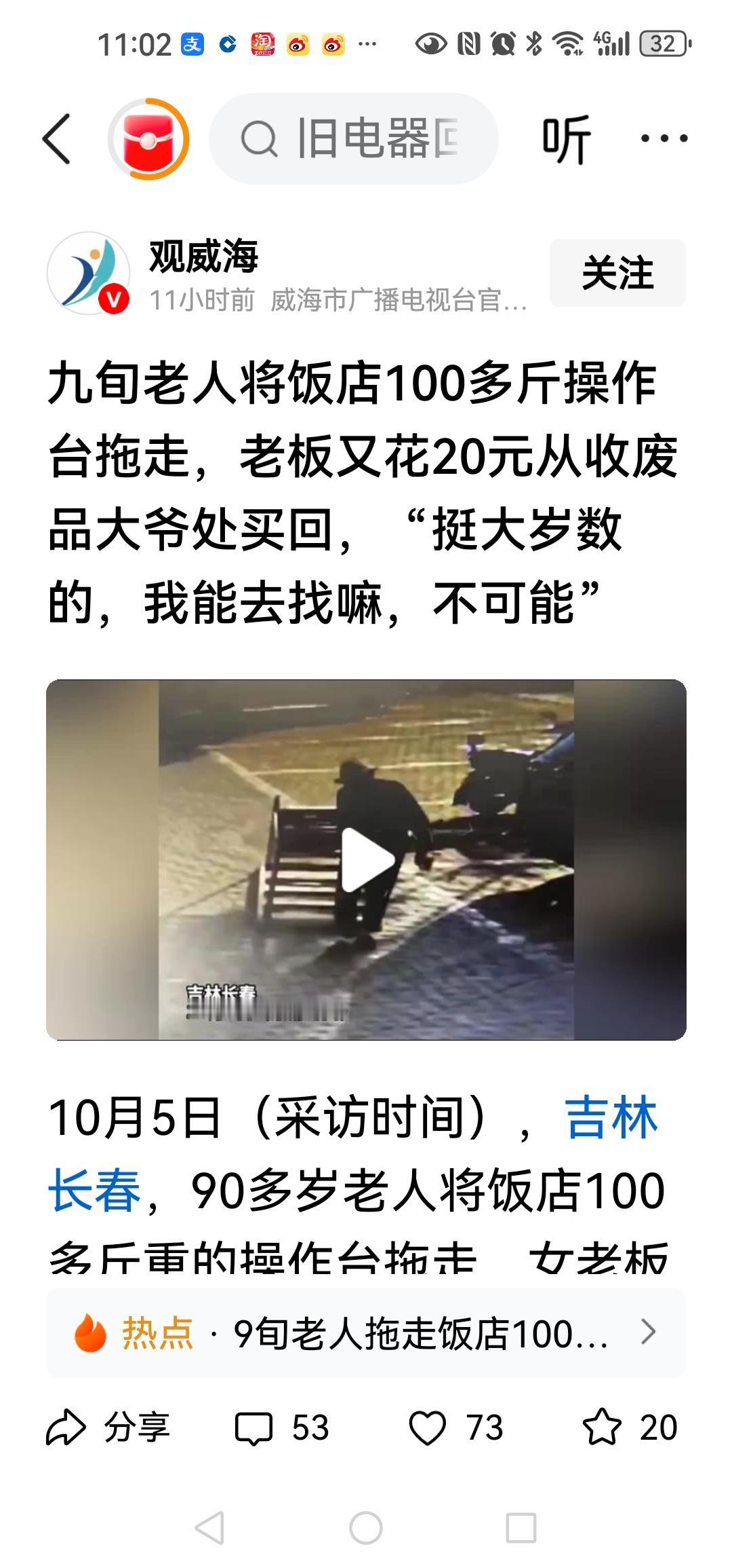 90多岁老人,100多斤操作台,拖着去卖钱了,换点生活费,唉,老而不死,活着多难?多心酸?90多岁,不该在家幸福的生活吗?