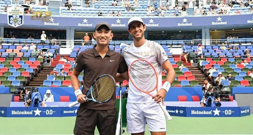 上海网球大师赛男单第三轮一场焦点战役中,已经连闯两关的小将商竣程在中央球场对阵葡