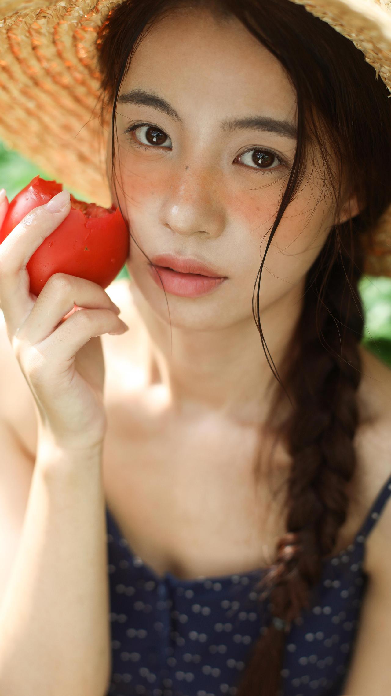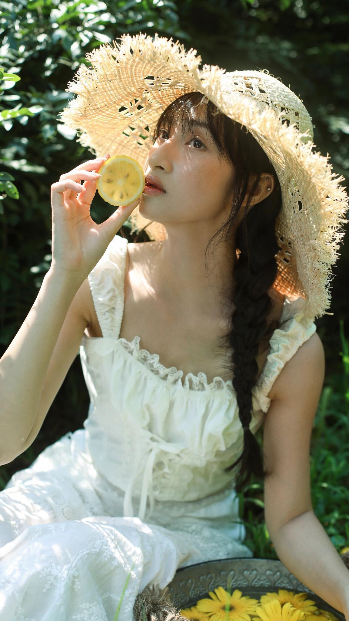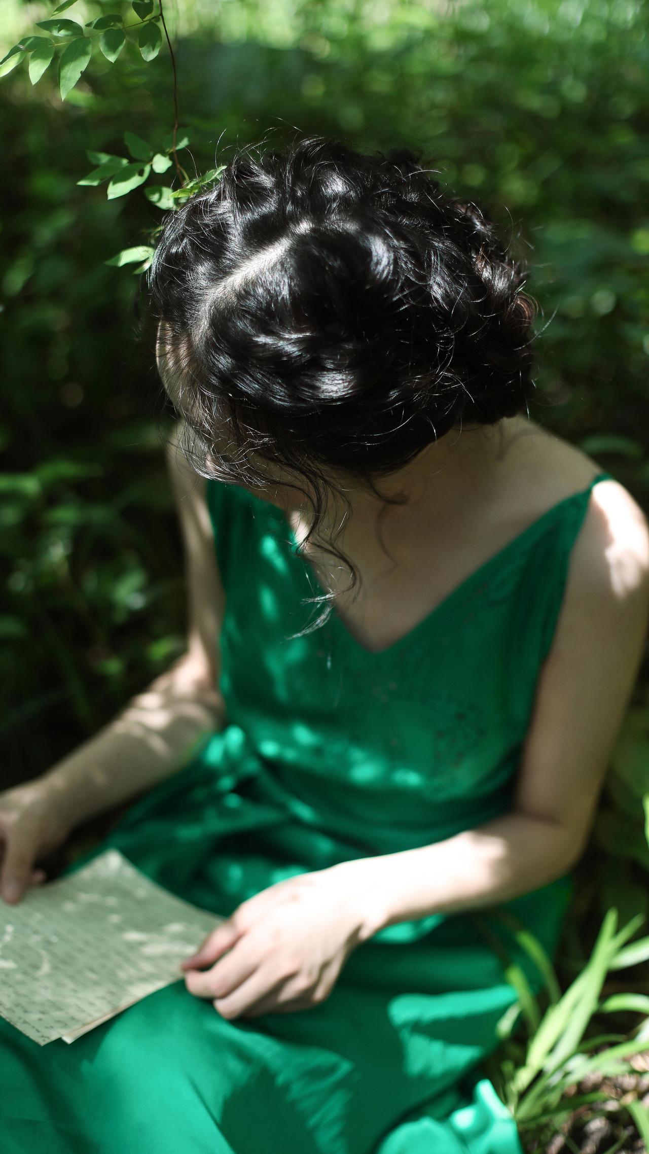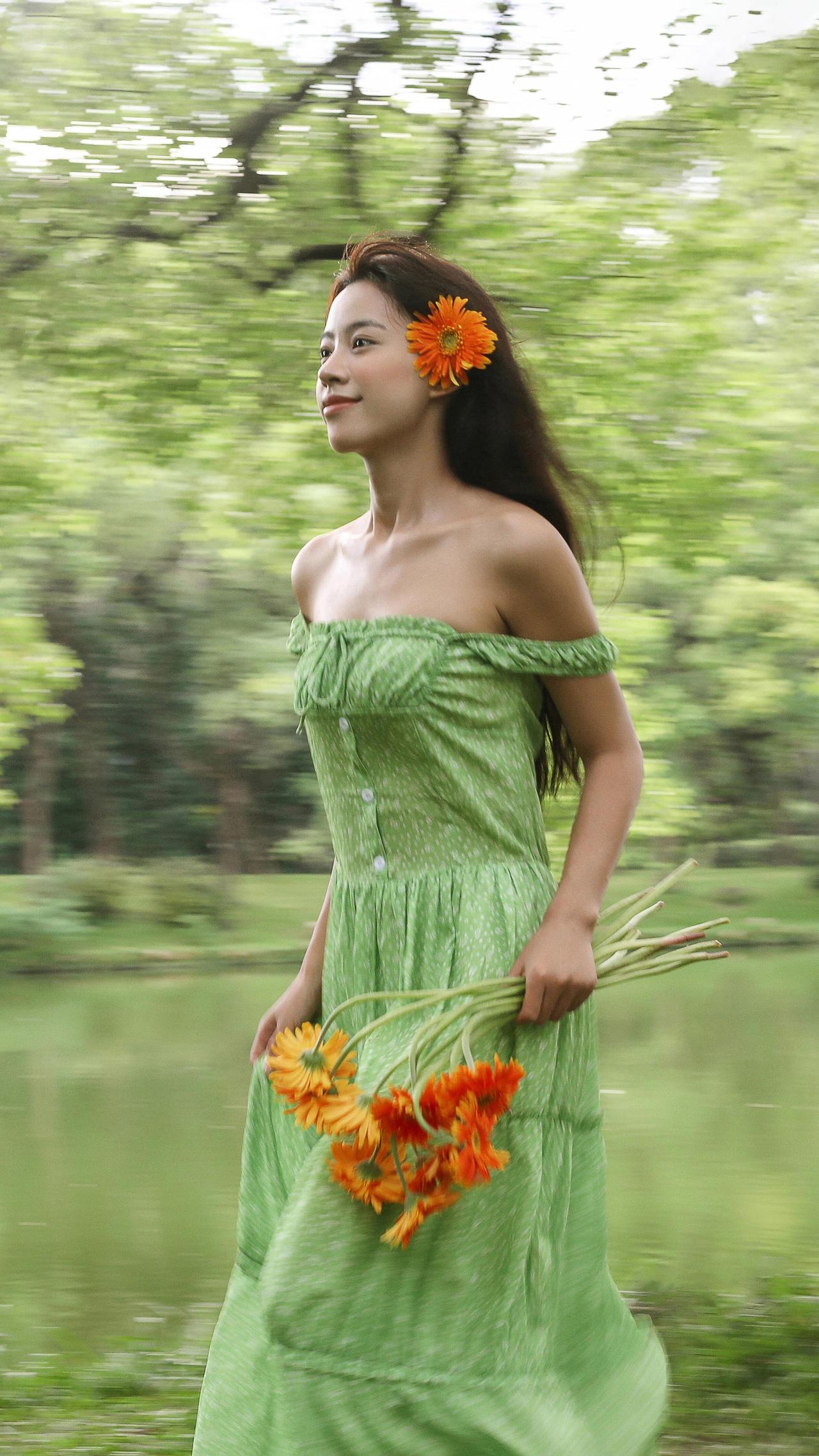 这张照片的魅力在于“以小见大”的情绪捕捉。画面中,大片的绿叶占据视觉左侧,形成强烈的框架感,将观者的目光自然引向模特的神态。模特的眼神是灵魂所在,那向上的凝视充满了天真的好奇与对自然的向往,仿佛在叶隙间窥见了只属于她的梦境。 妆容设计极具风格,面颊的红调不是传统的柔美腮红,更像是被森林气息晕染的自然气色,搭配清透的底妆,将“原生感”与“艺术感”融合得恰到好处。耳畔的小巧耳饰则是点睛之笔,在森系的质朴中加入一丝精致,让画面层次更丰富。光影上,柔和的散射光弱化了明暗对比,却强化了肌肤的细腻与叶片的肌理,整体氛围静谧又充满叙事感,仿佛在邀请观者猜测:她在叶后看见了什么?是一只昆虫的爬行,还是一缕光的舞蹈?这种留白式的表达,正是其动人之处。