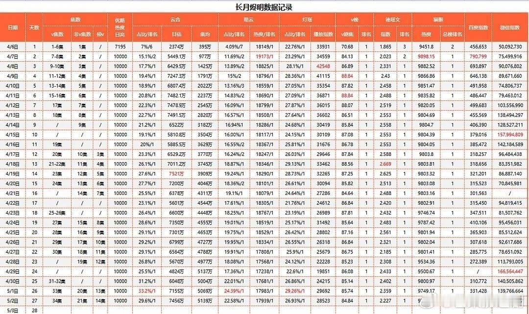 原来罗云熙《长月烬明》第十五天的时候就已经4000w集均了,没有云包场,4月冷档期,周末断更,全方位围剿还是脱颖而出,更期待《水龙吟》了