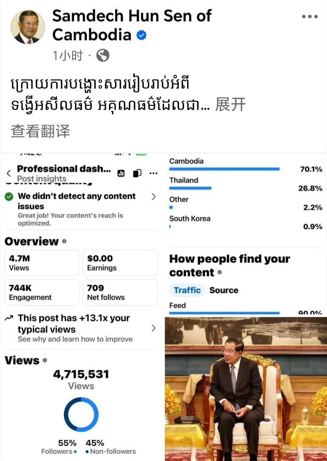 洪森接连发帖,呼吁民众抵制泰国商品和泰铢! 消息来源:国外社交平台 10月6日洪