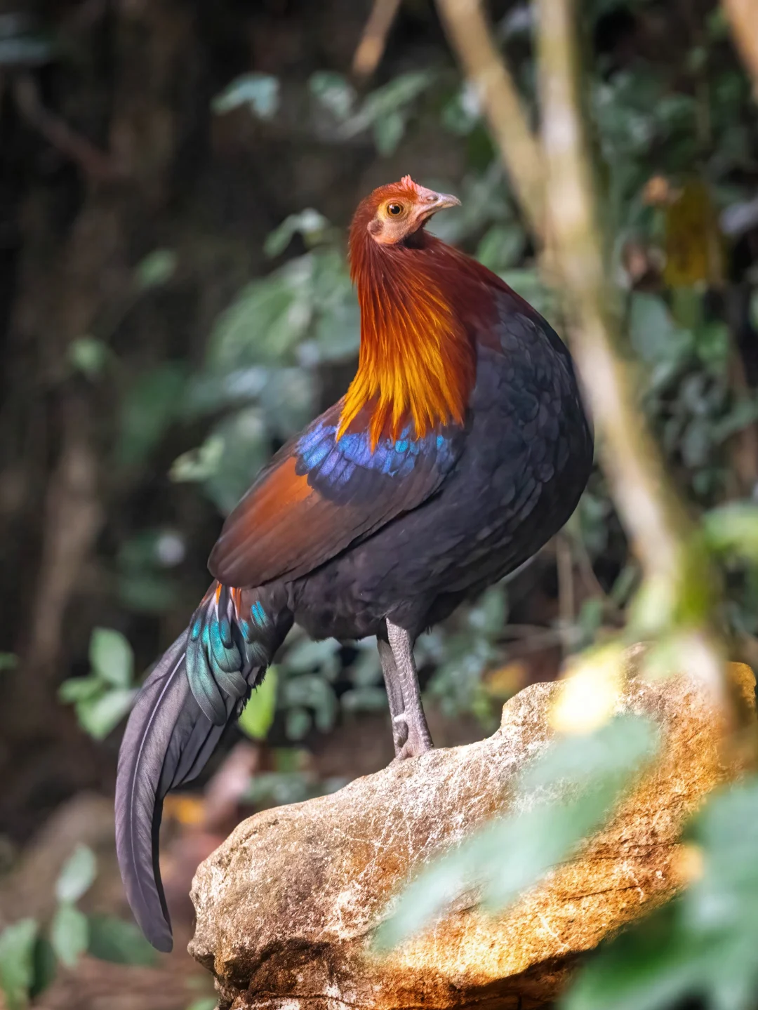 红原鸡,鸡形目雉科原鸡属。国家二级保护动物。红原鸡原生于南亚和东南亚,是现代家鸡的祖先。通常认为红原鸡在大约8000年前被人类驯化成为家鸡。