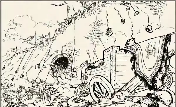 一声令下,军士架起数百云梯,锋涌而上,不料,城上火箭如雨,云梯尽着,梯上军士多被烧死,蜀兵损失惨重。