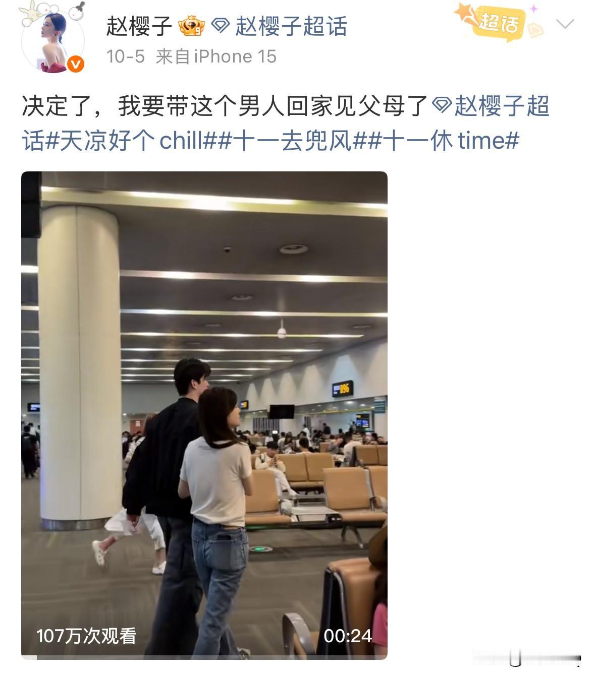 赵樱子想红想疯了,好好的和亲弟弟回家过节日,文案非要写成“决定了,我要带这个男人