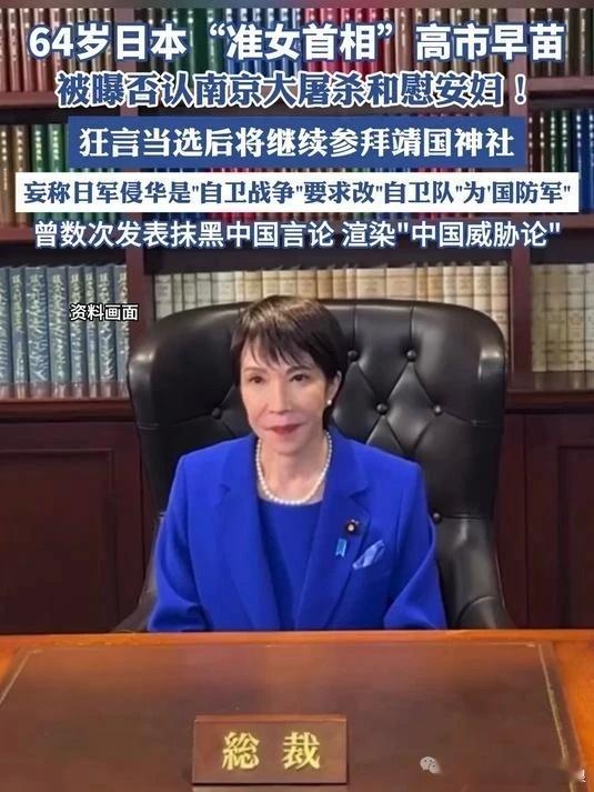 高市早苗被称作日本鹰派女王,她就两个特点,一个是极端右翼,一个是极端反华。