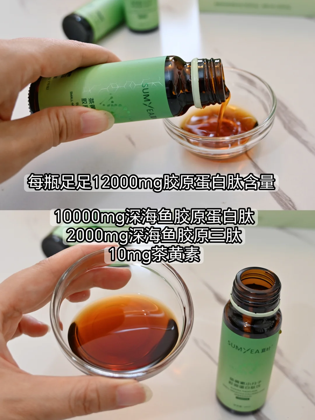 每瓶足足12000mg胶原蛋白肽含量。包括重金属之类的有害物质都低于行业和国家标准的,喝得安安心心。