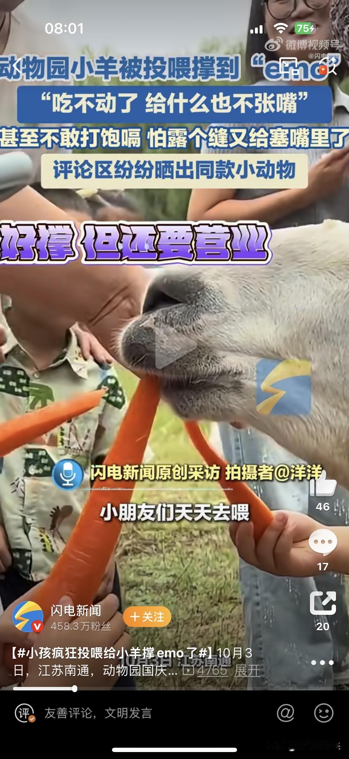 今年国庆、中秋双假合一,人们旅游的热情,动物园的动物们感受最深![捂脸] 这不,南通动物园里的这只山羊陷入了“甜蜜的负担”! 吃不下啊,实在吃不下了!前来投喂的小朋友实在太多,他们全都太热情了,搞的🐐都不敢张开嘴,生怕一不小心留个缝又被人塞进了食物! 此刻山羊一定在想:小孩哥们实在太热情,人又太多了!可你们当本山羊是猪啊?被迫营业实在不是滋味!吃撑了,实在吃不动了! 其实抱怨的何止是山羊,有网友反映济南趵突泉锦鲤们被投喂的都快游不动了!评论区众多网友们更是晒出同款小动物! 对动物无言的爱,承载着人们节日的欢欣。动物们“甜蜜的负担”是否也让我们思考:这份爱,是否该留些余地?