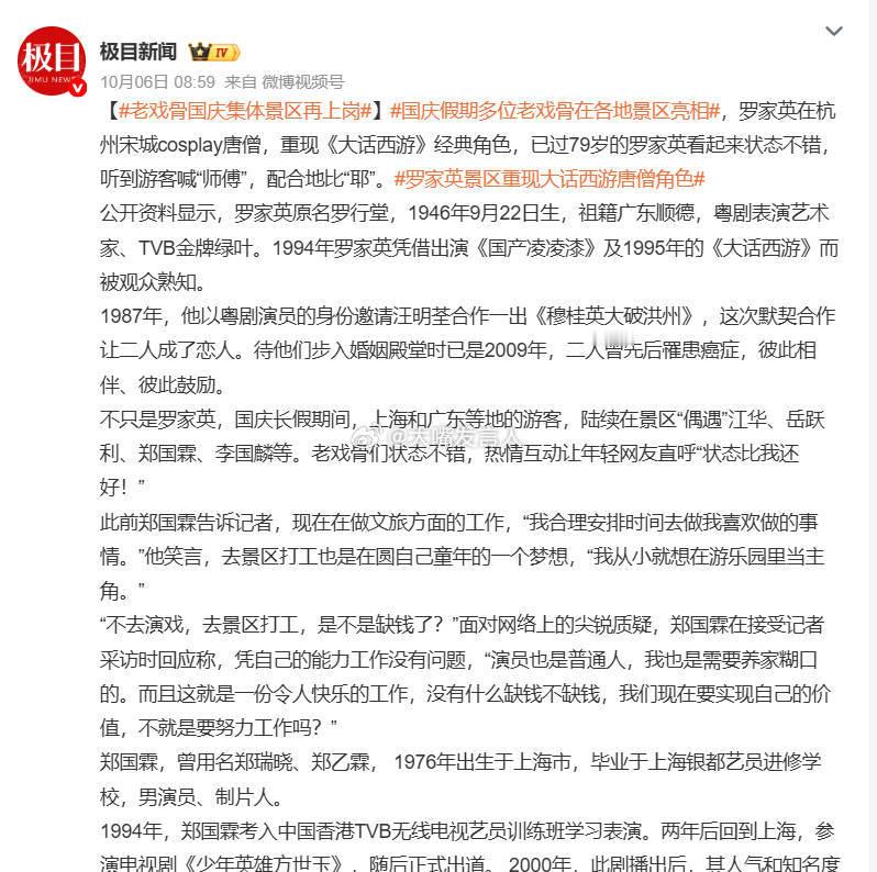 罗家英景区重现大话西游唐僧角色,老戏骨国庆集体景区再上岗,热点观点,今年已有多名艺人在景区再就业