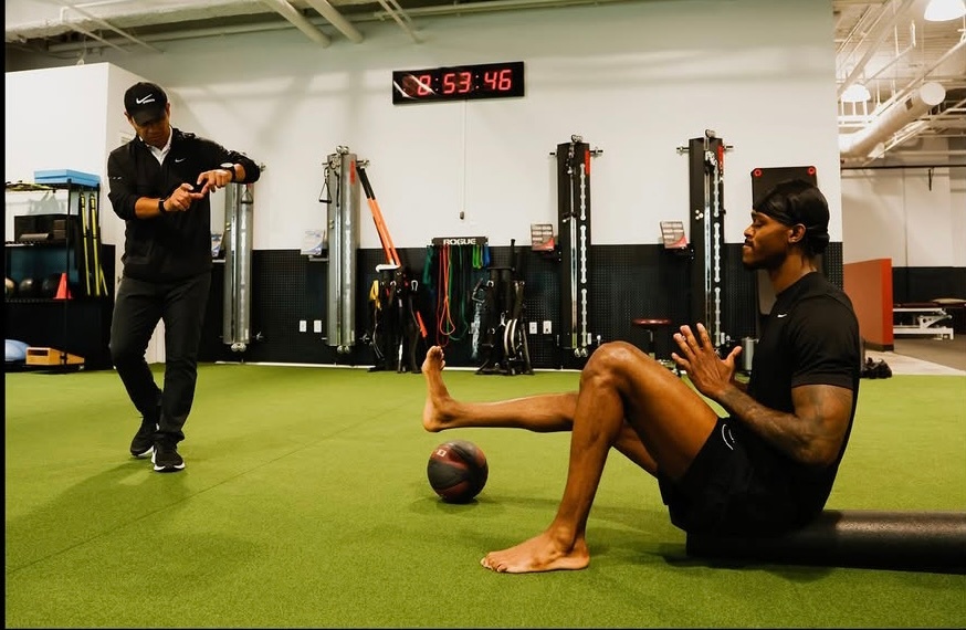 三分就慢慢来吧,出手挺果断的。脚步移动上看确实健康了。
