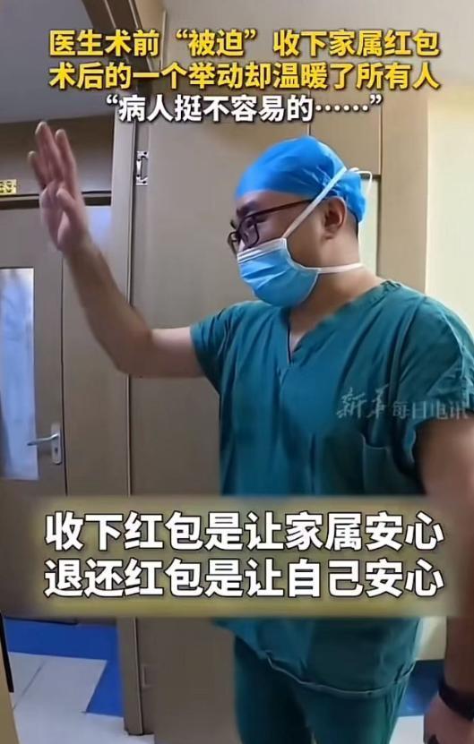 这个医生火了!9月25日报道,北京某医院,家属给医生塞了一个一万块钱的红包,医生没有推辞,但他反手就做了一件事情,温暖了所有人! 9月25日新华每日电讯报道,北京朝阳医院骨科副主任医师赵会刚查完房回到办公室,一位中年男子急匆匆推门进来,他是89床糖尿病足患者的儿子,老人因为糖尿病并发症导致足部溃烂,情况相当严重。 赵主任,您一定要救救我爸,男子说着,从包里掏出一个黑色塑料袋,不由分说塞到赵会手里,袋子沉甸甸的赵会心里有数这是红包。 患者家属眼圈发红:我们从河北农村来的,知道您医术好专门找您,这点心意您收下求您多费心。 赵会接过袋子平静地说:您放心,手术我会尽全力做好的。 送走家属后赵会打开袋子数了数,整整一万块现金,他叹了口气这已经不是第一次遇到这种情况了,很多外地患者觉得不送红包医生就不会认真治病,这种想法让他既无奈又心酸。 赵会没有多想拿着钱直接去了住院处,89床患者的住院费,麻烦您给充上,他把钱递给收费员,记得开个收据。 收费员认识赵会知道他的为人,二话没说就办理了手续,这样的事在朝阳医院并不罕见,医生们都有自己的原则。 手术安排在第二天上午,赵会带领团队为老人进行了清创手术,整个过程持续了三个多小时,糖尿病足的手术难度不小,需要彻底清除坏死组织,还要考虑后续的愈合问题。 手术很成功当患者被推出手术室时,家属们围了上来,赵会摘下口罩,告诉他们:手术很顺利,但后续护理很重要要严格控制血糖。 就在家属千恩万谢的时候,赵会从口袋里掏出那张收据:这是昨天那笔钱的收据,已经充到您父亲的住院费里了。 患者儿子愣住了接过收据看了又看,眼眶湿润了:赵主任,您这是...... 你们从农村来看病不容易,这钱留着给老人买营养品吧,"赵会拍拍他的肩膀,好好照顾老人,有什么问题随时找我。 这件事很快在病房里传开了,其他患者和家属纷纷竖起大拇指,说赵主任不仅医术高明医德更是没得说。 其实在朝阳医院,像赵会这样的医生还有很多,骨科主任张志山就曾多次婉拒患者红包,实在推不掉的就让护士长代为保管,等患者出院时如数奉还,内科的李医生更是直接在办公室门上贴了谢绝红包的告示。 医院对此也有明确规定,收受红包属于违规行为,一经查实会受到严肃处理,但像赵会这样巧妙处理的做法,既照顾了患者家属的心理,又坚守了职业操守值得点赞。 一位在朝阳医院工作多年的护士长说:其实大部分医生都不会收红包,我们每天面对那么多患者,如果因为红包区别对待良心上过不去,医生这个职业说到底还是要对得起自己的良心。 赵会今年48岁,从医已经20多年,他在骨科领域颇有建树,尤其擅长糖尿病足、骨髓炎等疑难病症的治疗,很多患者慕名而来他的专家号经常一号难求。 赵会说道:做医生最大的成就感,就是看到患者康复出院,红包解决不了任何问题,反而会让医患关系变味,我们需要的是相互理解和信任。 这件事在网上引发热议后,不少网友表示要为赵会点赞,有人说:这才是真正的白衣天使,不为金钱所动一心为患者着想,也有人建议:医院应该表彰这样的好医生,让更多人向他学习。 赵会的做法给人们带来了一丝暖意,他用实际行动证明,大多数医生都是有职业操守的,他们真心实意为患者服务,不需要红包来买责任心。 对于患者和家属来说,与其费心思送红包,不如多一些理解和配合,医生也是人他们每天高强度工作,承受着巨大的压力,一句感谢的话一个理解的眼神,比任何红包都更能温暖他们的心。 赵会的故事告诉我们,医患之间需要的是信任,而不是金钱交易,当医生恪守职业道德,患者给予充分信任,这样的医患关系才是健康的、和谐的,希望这样的正能量故事能够越来越多,让医患关系回归到最纯粹的治病救人本质上来。 麻烦看官老爷们右上角点击一下“关注”,既方便您进行讨论和分享,又能给您带来不一样的参与感,感谢您的支持!