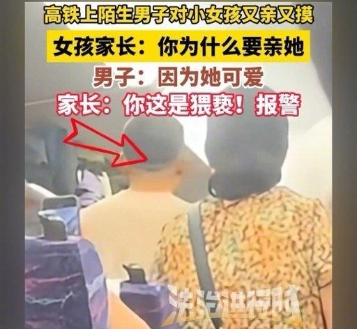 【高铁上男子亲陌生女娃称太可爱】男子又亲又摸旁边女娃家长报警我们这边见着可爱的小