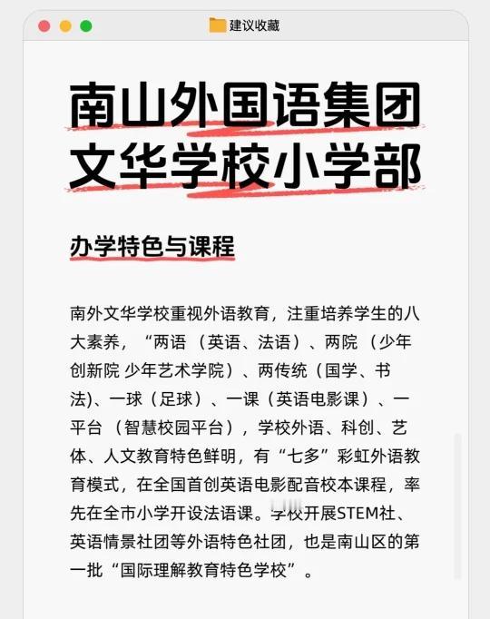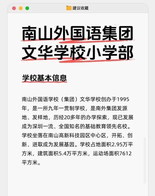 今天给来给大家揭秘文华小学租房就能上 2025年的录取积分48分意味着办理租赁凭证就能达到目前的录取积分,南山的家长还不赶快冲冲冲√ 南外文华学校是一所九年一贯制公办学校,创办于1995年,是南外集团发源地。南外文华学区老,虽然基本都是楼梯房,但整体环境很好。南外文华学校位于科技园,学生家长素质过硬,南外的教学质量南山区人民有目共睹,作为本部更加受欢迎。学校以英语教学为特色。创新和发展“七多”彩虹外语教育模式,在全国首创英语电影配音校本课程,并率先在全市小学开设法语课。与英国、美国、德国、法国、加拿大、澳大利亚、新西兰、韩国等国多所学校缔结了姊妹校,与英国剑桥教育集团、香港优才书院、香港贞道书院、澳门濠江中学建立了手拉手学校。深圳上学 积分入学 深圳幼升小 公办中小学 深圳积分入学 幼升小 升学规划 深圳小升初 南山外国语文华部